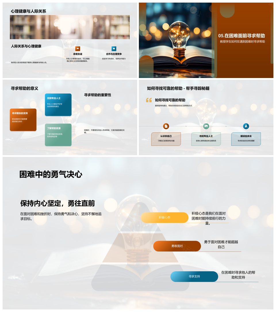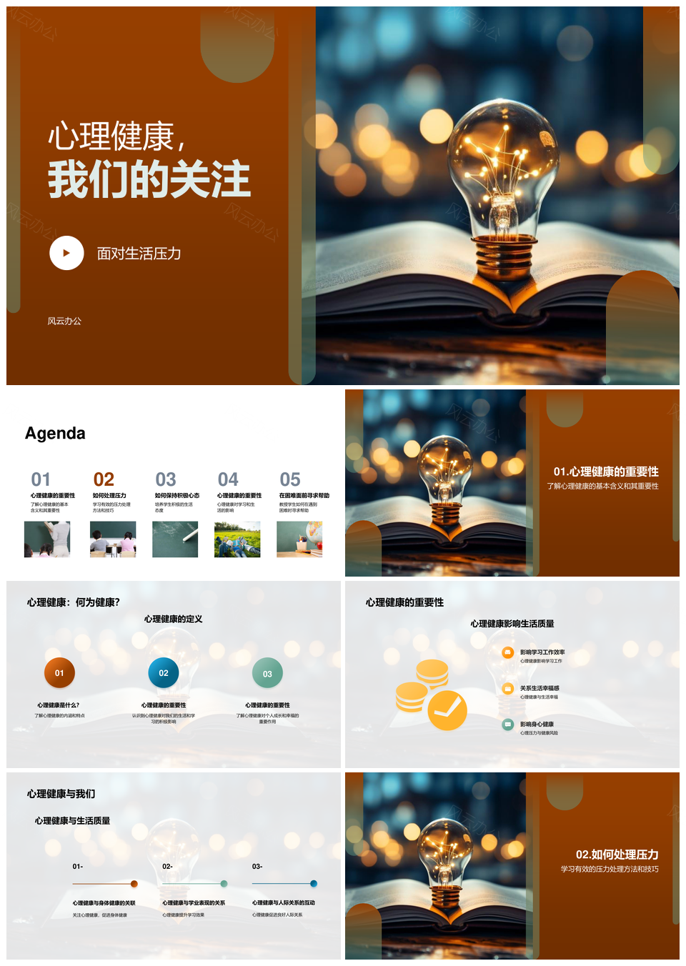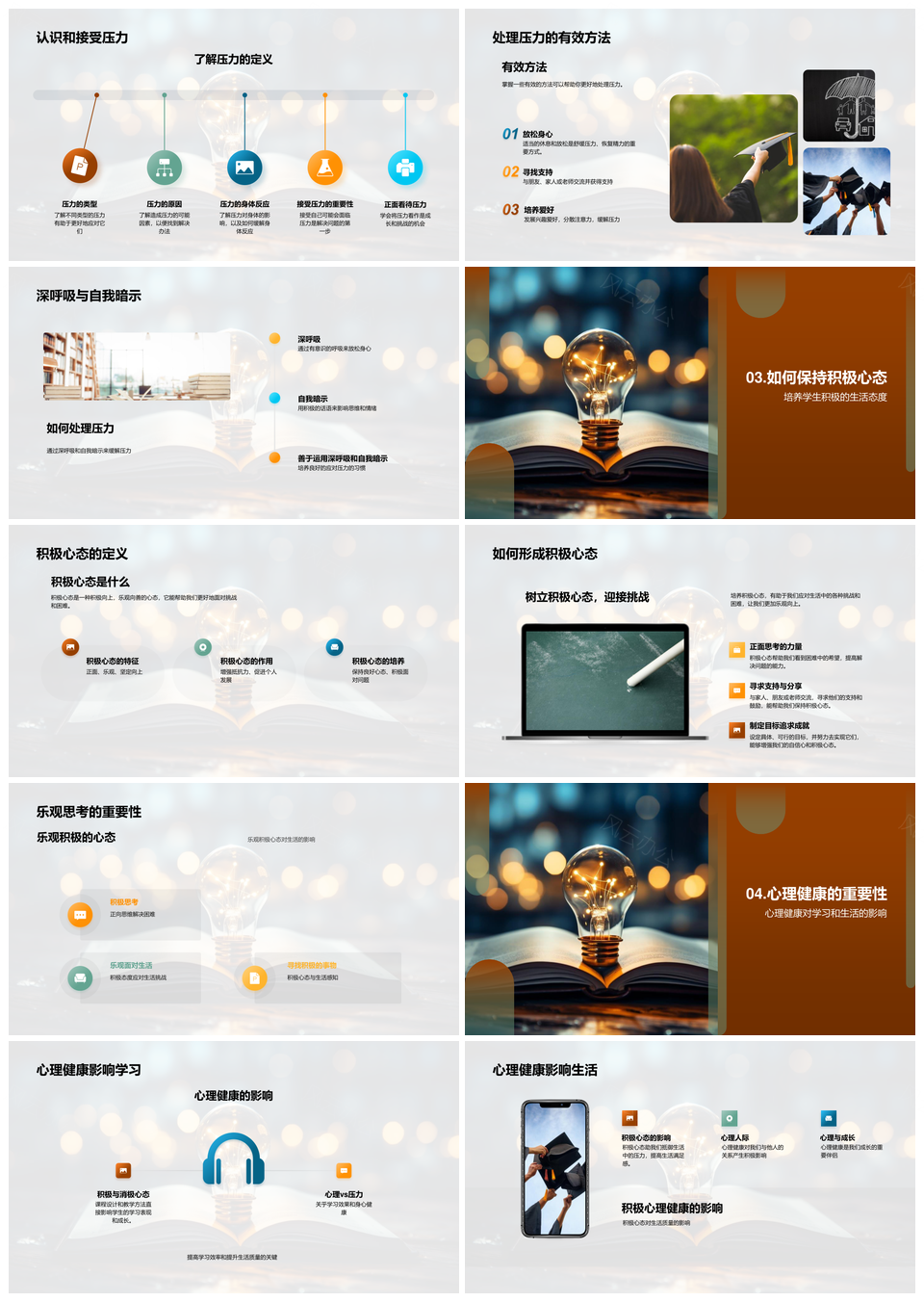 风云办公提供的学生心理健康应对压力积极教育活动PPT模板,下载格式为pptx,一共23页,作品中文字及图均可以修改和编辑,图片更改请在作品中右键图片并更换,文字修改请直接点击文字进行修改。
