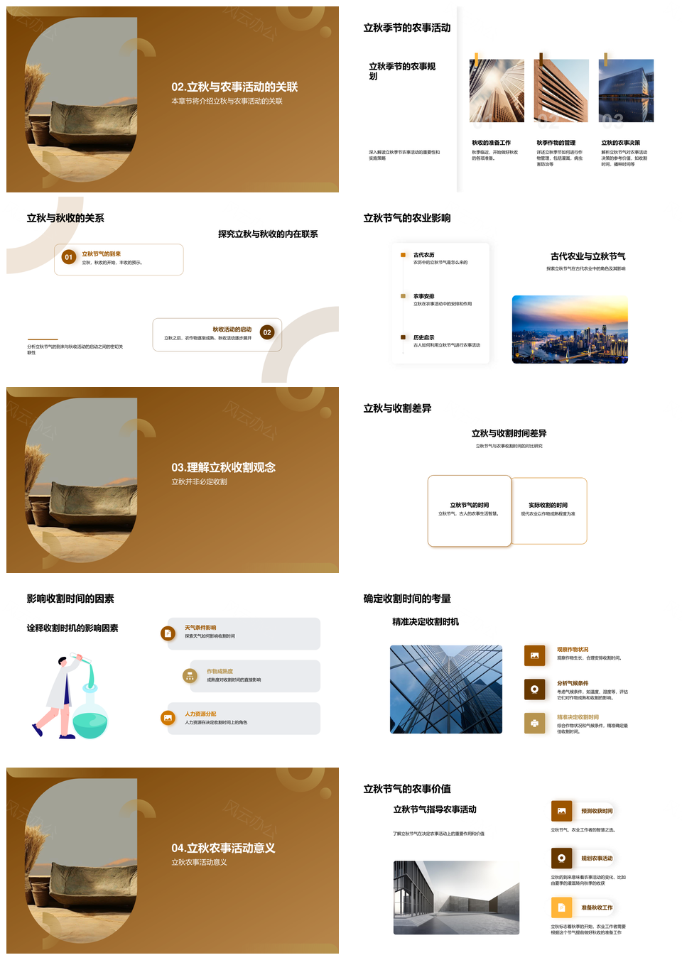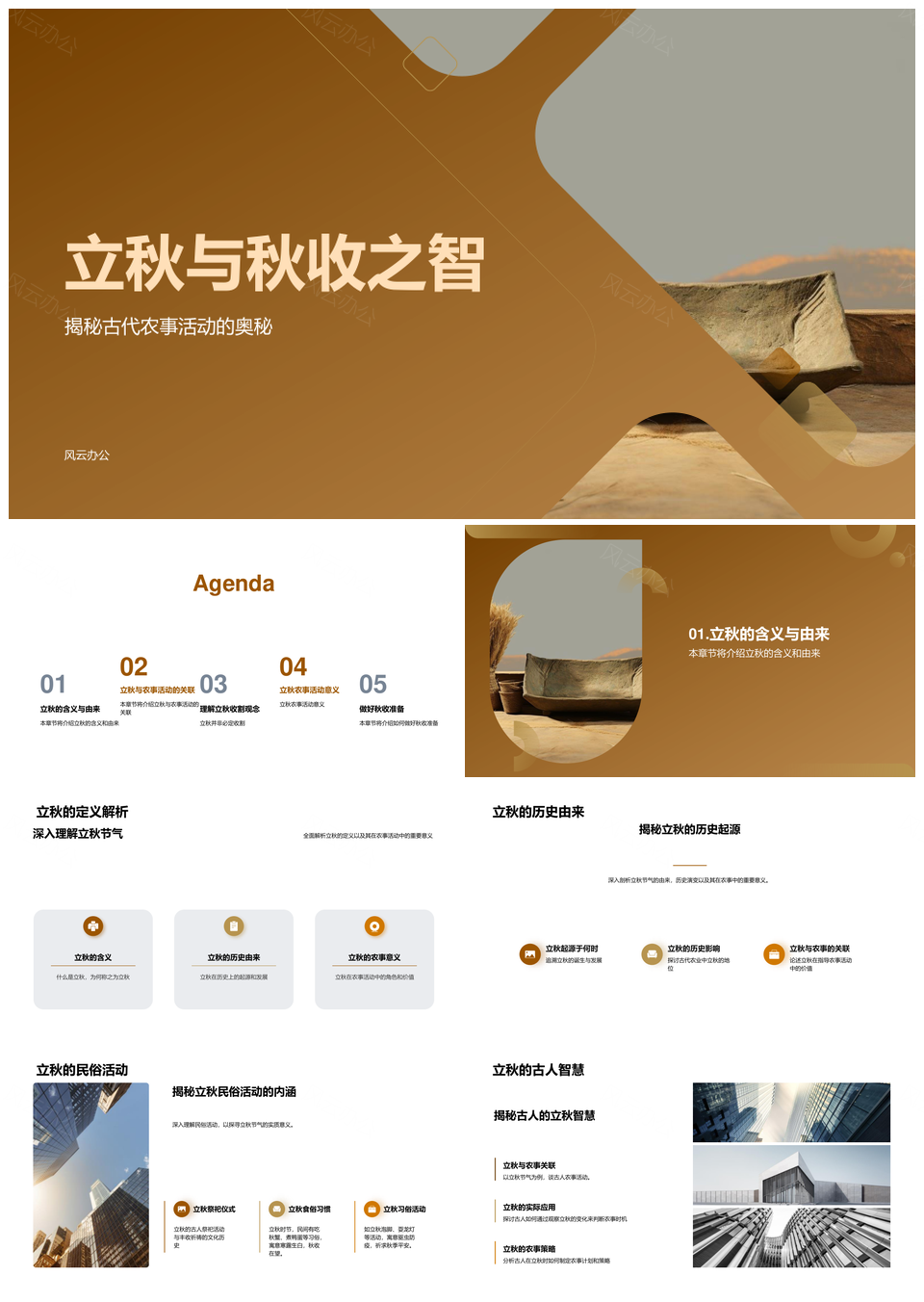 风云办公提供的古代立秋农事活动与秋收智慧PPT模板,下载格式为pptx,一共23页,作品中文字及图均可以修改和编辑,图片更改请在作品中右键图片并更换,文字修改请直接点击文字进行修改。