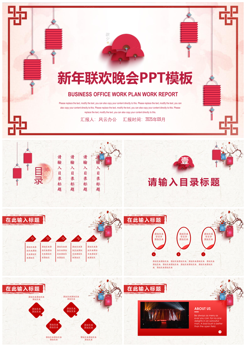 这是一张2025新年联欢晚会PPT模板,包含2025、新年、联欢晚会等主题内容,也可用作2025、新年、联欢、晚会 2025新年联欢晚会、2025新年联欢、2025联欢晚会、新年联欢晚会、2025新年晚会、2025新年、新年联欢、联欢晚会、新年晚会、2025联欢、2025晚会等PPT场景使用。 风云办公提供的2025新年联欢晚会PPT模板,下载格式为pptx,一共24页,作品中文字及图均可以修改和编辑,图片更改请在作品中右键图片并更换,文字修改请直接点击文字进行修改。