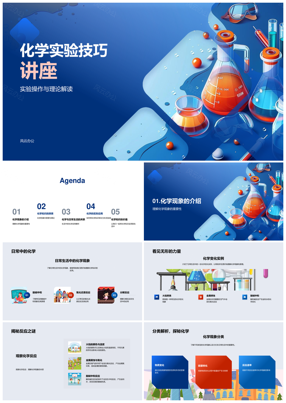化学实验技巧原理设备反应之美趣味讲座PPT模板推荐