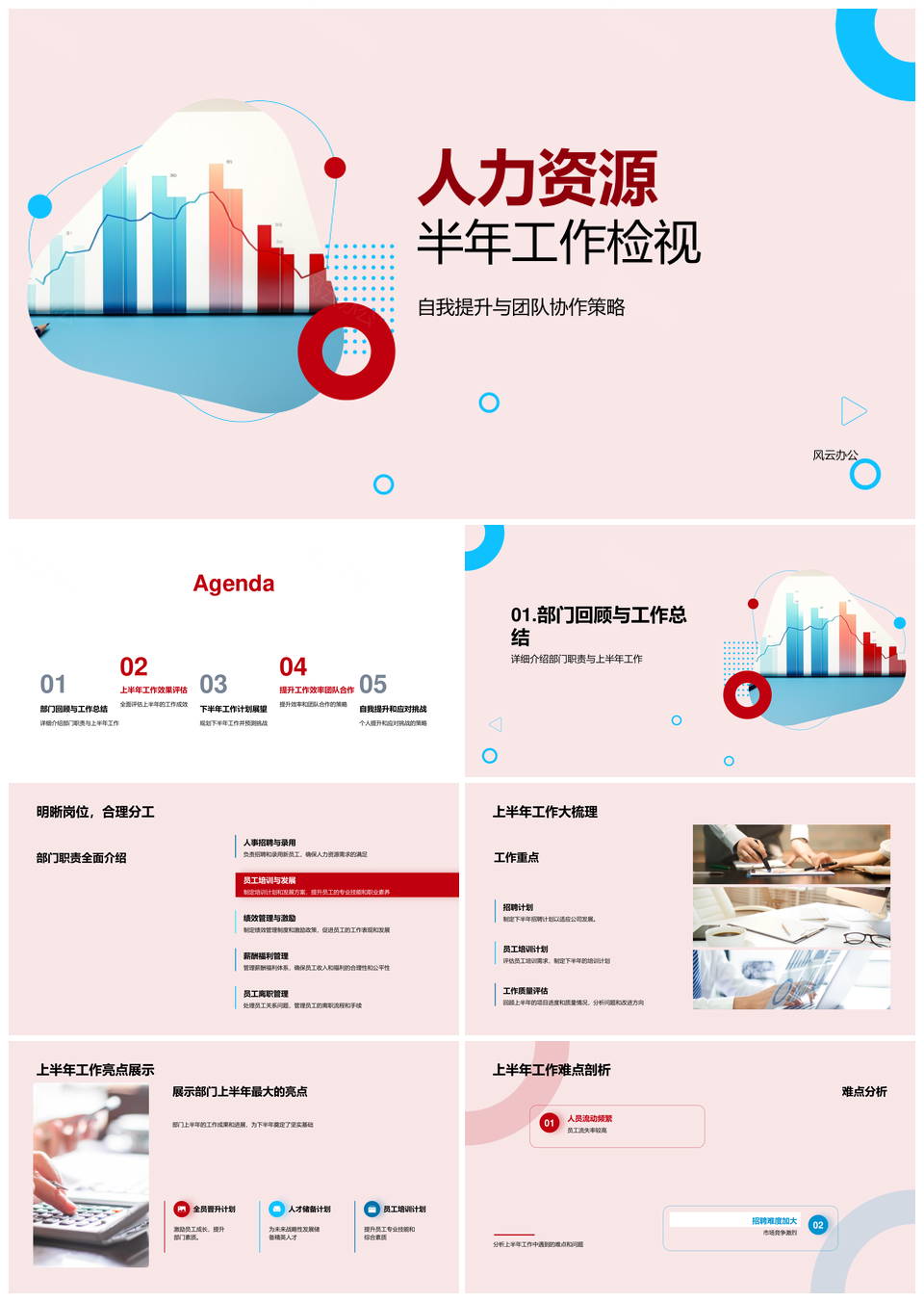 人力资源半年度工作检视与团队协作提升评估PPT模板推荐