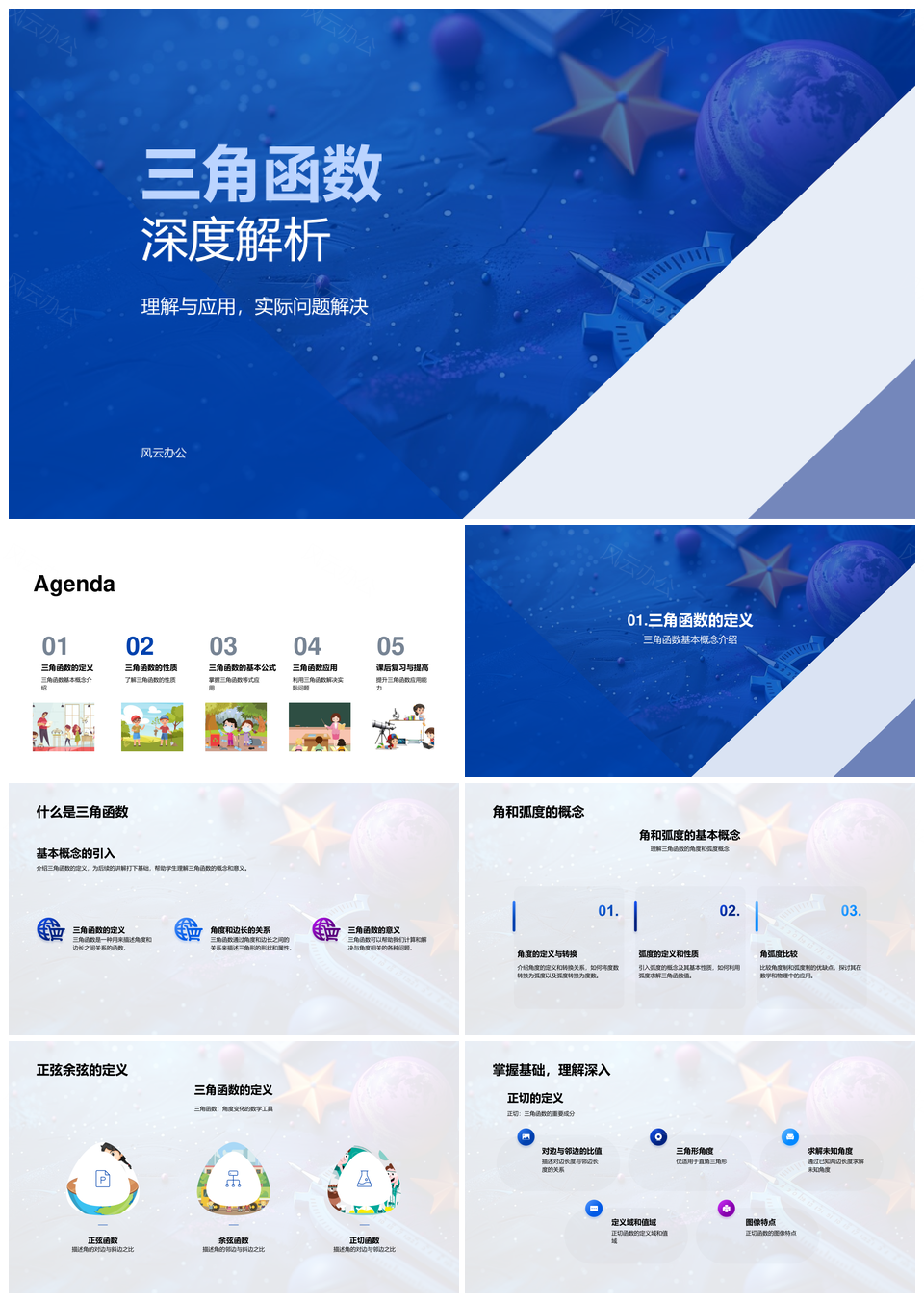 风云办公提供的三角函数正弦余弦正切性质弧度解析PPT模板,下载格式为pptx,一共29页,作品中文字及图均可以修改和编辑,图片更改请在作品中右键图片并更换,文字修改请直接点击文字进行修改。