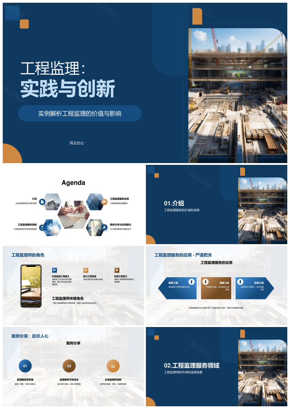 风云办公提供的工程监理服务实践创新成功案例PPT模板,下载格式为pptx,一共22页,作品中文字及图均可以修改和编辑,图片更改请在作品中右键图片并更换,文字修改请直接点击文字进行修改。