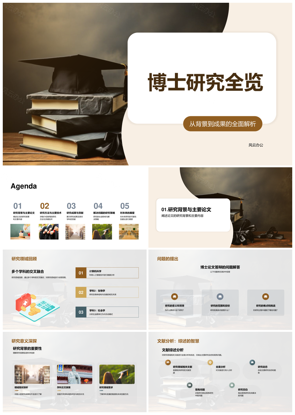 风云办公提供的博士研究全流程答辩背景方法成果贡献PPT模板,下载格式为pptx,一共33页,作品中文字及图均可以修改和编辑,图片更改请在作品中右键图片并更换,文字修改请直接点击文字进行修改。