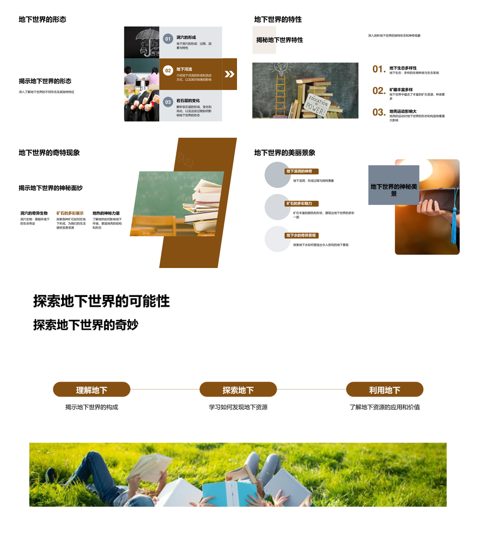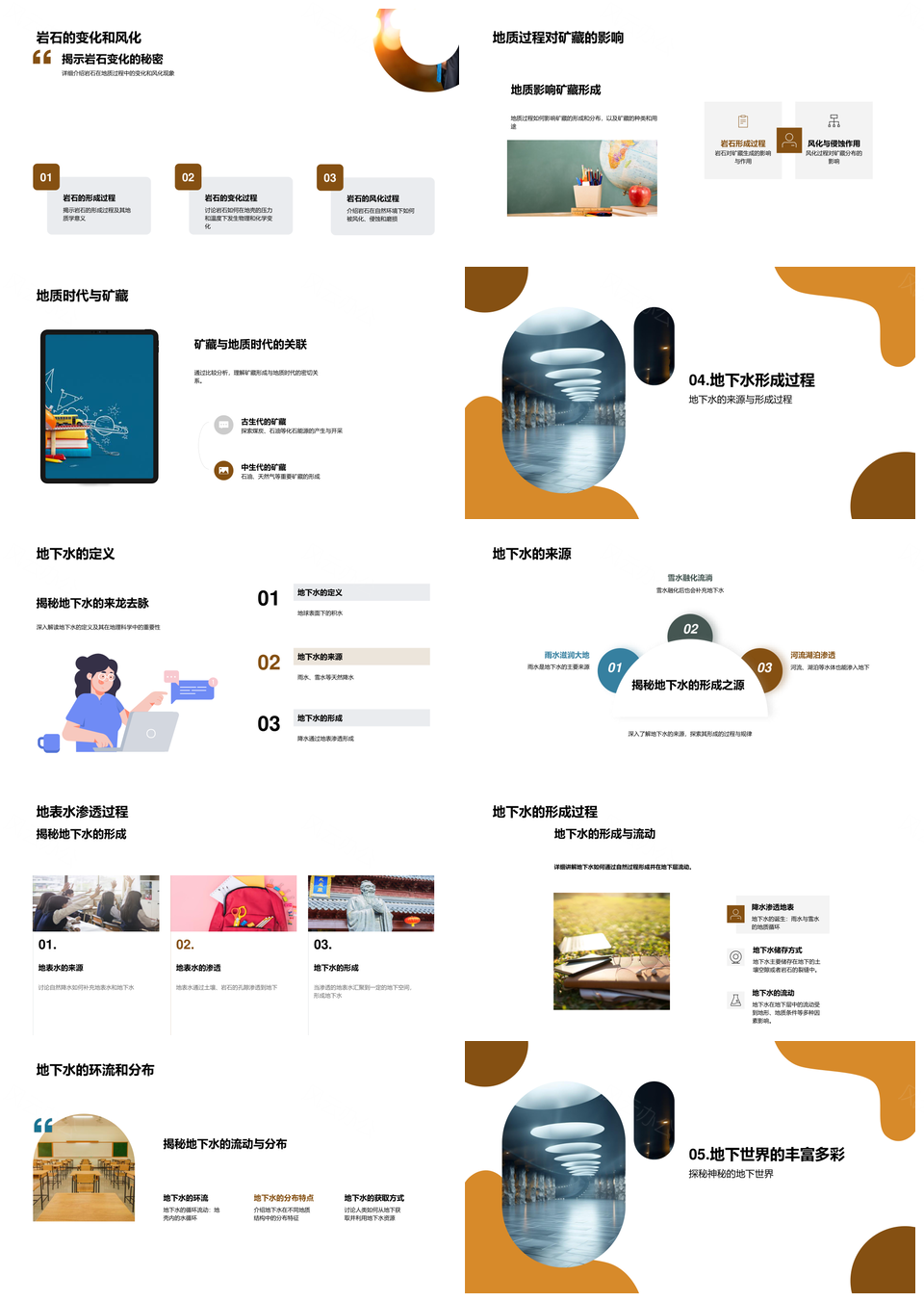 风云办公提供的地下世界矿藏水源形成与分布探秘PPT模板,下载格式为pptx,一共33页,作品中文字及图均可以修改和编辑,图片更改请在作品中右键图片并更换,文字修改请直接点击文字进行修改。