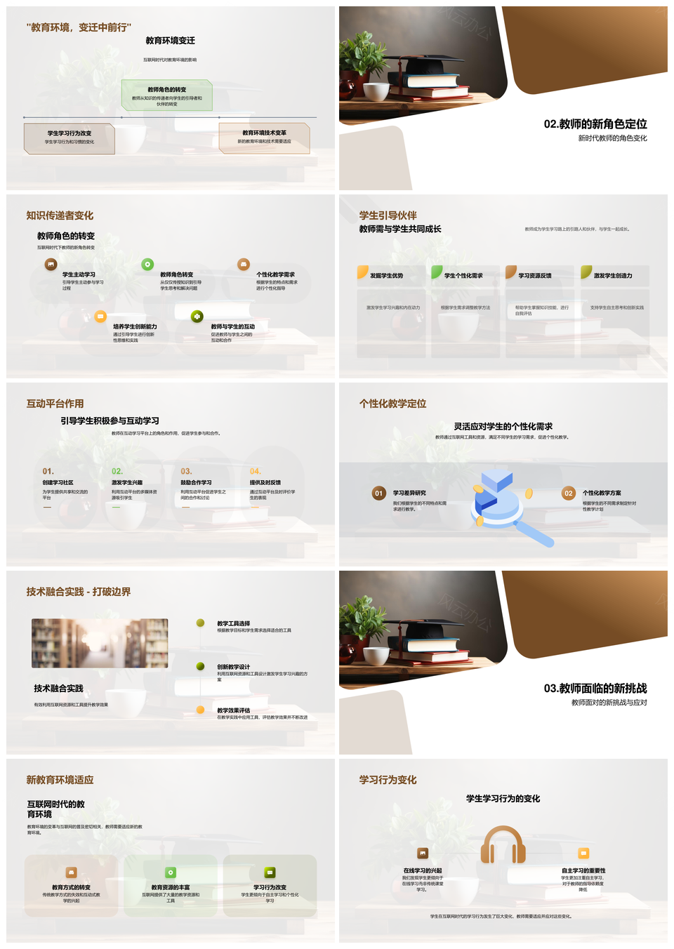 风云办公提供的互联网教师角色职责与数字平板转型PPT模板,下载格式为pptx,一共33页,作品中文字及图均可以修改和编辑,图片更改请在作品中右键图片并更换,文字修改请直接点击文字进行修改。