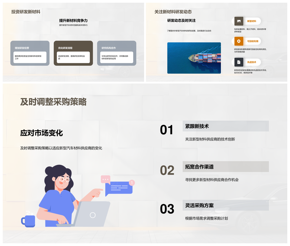 这是一张新型汽车材料创新应用与制造商协作PPT模板,包含新型汽车、材料、创新应用、制造商、协作等主题内容,也可用作新型汽车材料创新应用、汽车材料创新应用制造商、材料创新应用制造商协作、新型汽车材料创新、汽车材料创新应用、材料创新应用制造商、创新应用制造商协作、新型汽车材料、汽车材料创新、材料创新应用、创新应用制造商、应用制造商协作、新型汽车、汽车材料、材料创新、创新应用、应用制造商、制造商协作等PPT场景使用。