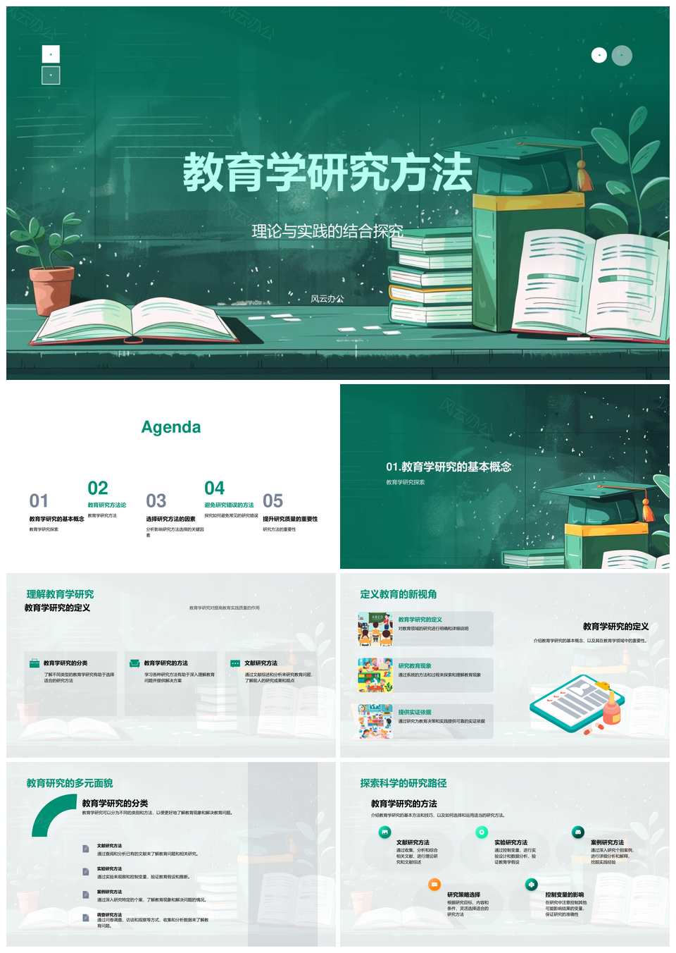 风云办公提供的教育学研究方法理论实践分类案例解析PPT模板,下载格式为pptx,一共28页,作品中文字及图均可以修改和编辑,图片更改请在作品中右键图片并更换,文字修改请直接点击文字进行修改。
