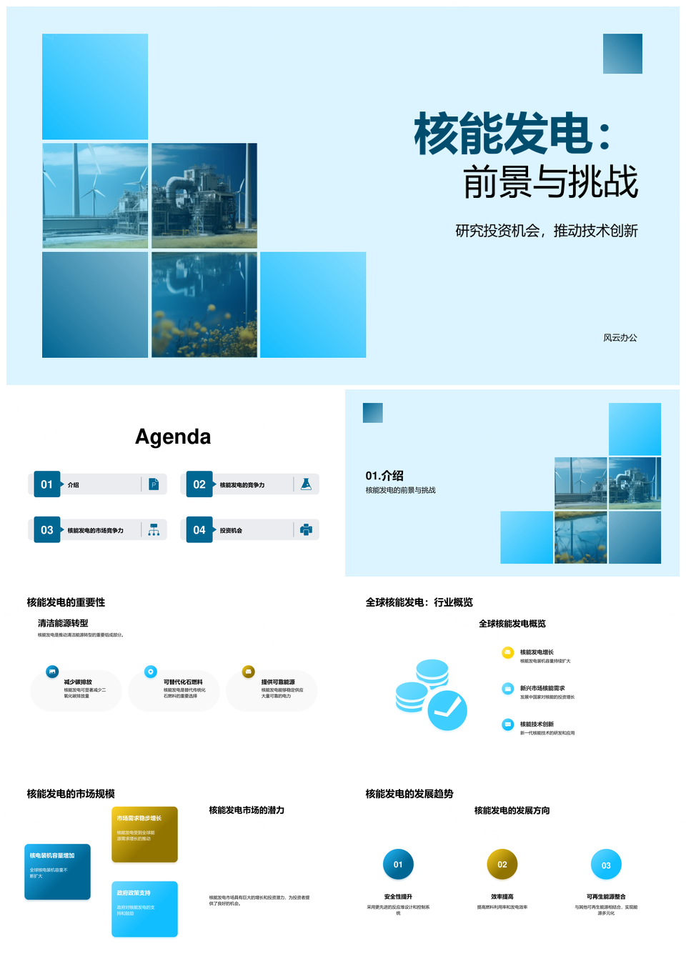 核能发电前景挑战与技术发展趋势PPT模板推荐