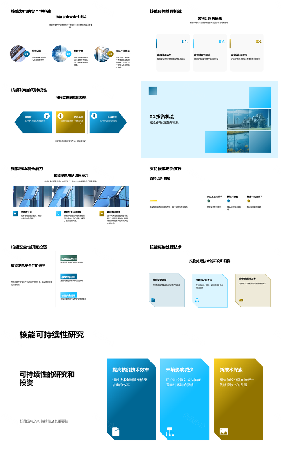 这是一张核能发电前景挑战与技术发展趋势PPT模板,包含核能发电、前景、挑战、技术、发展趋势等主题内容,也可用作核能发电前景挑战、技术发展趋势、核能发电技术发展、核能发电技术、核能发电发展、发电技术发展、核能发电、技术发展、发展趋势、发展前景、前景挑战、发电技术、核能发展、发电发展、技术趋势等PPT场景使用。 风云办公提供的核能发电前景挑战与技术发展趋势PPT模板,下载格式为pptx,一共27页,作品中文字及图均可以修改和编辑,图片更改请在作品中右键图片并更换,文字修改请直接点击文字进行修改。