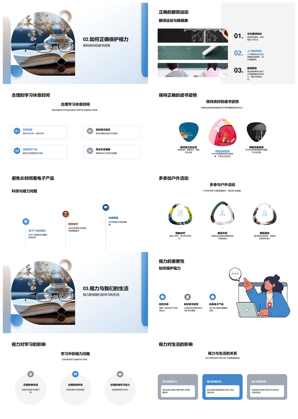 防控近视护眼端正姿势远离屏幕多户外合理休息PPT模板