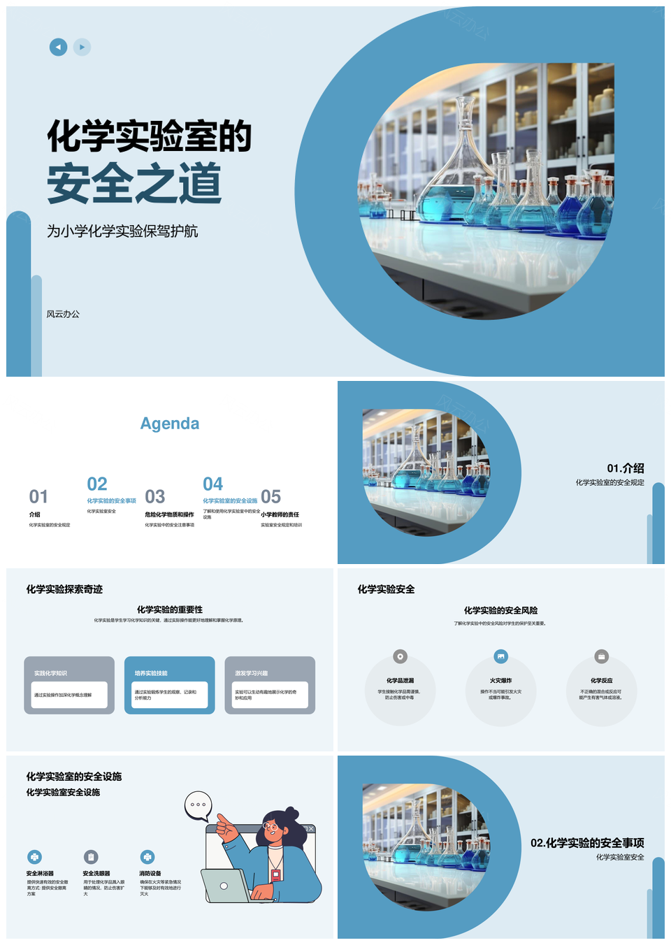 风云办公提供的化学实验室安全设施与风险管理指南PPT模板,下载格式为pptx,一共24页,作品中文字及图均可以修改和编辑,图片更改请在作品中右键图片并更换,文字修改请直接点击文字进行修改。