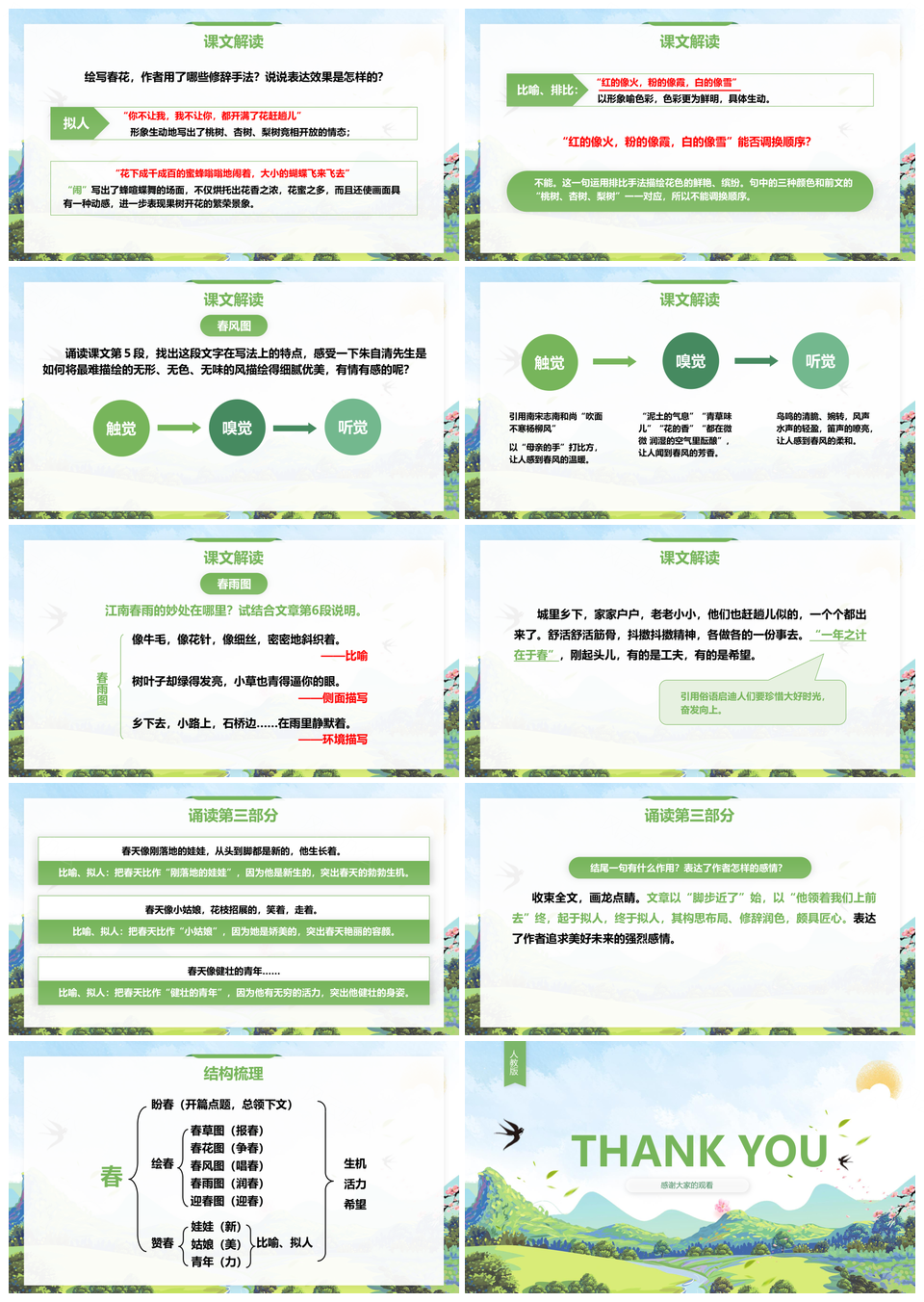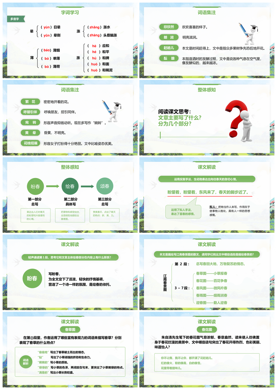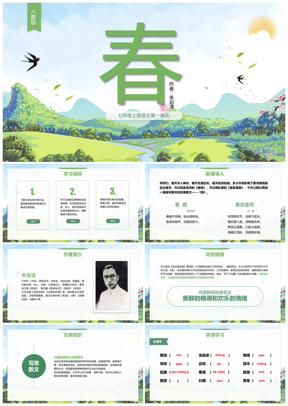 绿色人教版语文七年级上册第1课《春》课件PPT模板