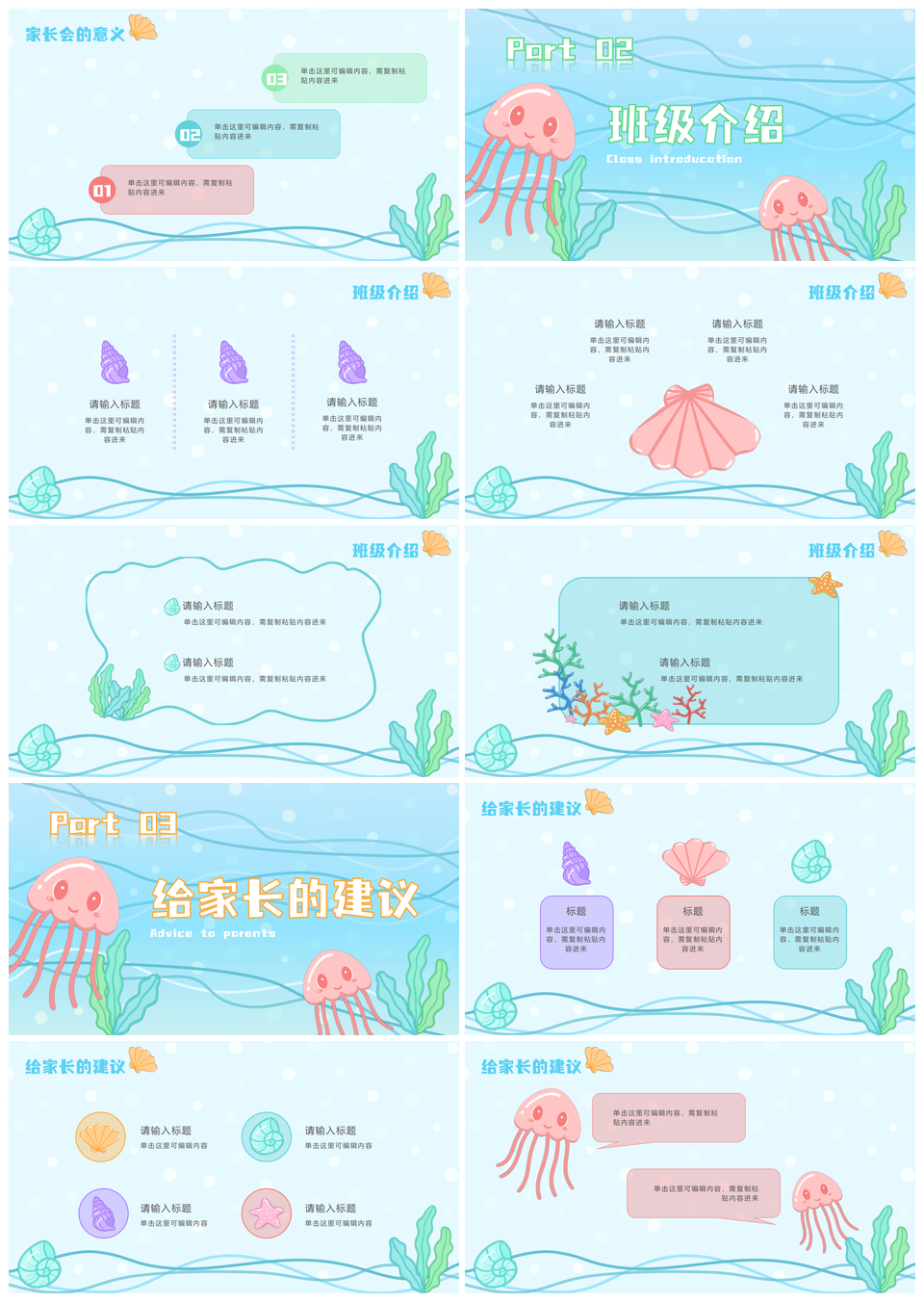 风云办公提供的开学家长会第一课蓝海粉水母教育PPT模板,下载格式为pptx,一共25页,作品中文字及图均可以修改和编辑,图片更改请在作品中右键图片并更换,文字修改请直接点击文字进行修改。