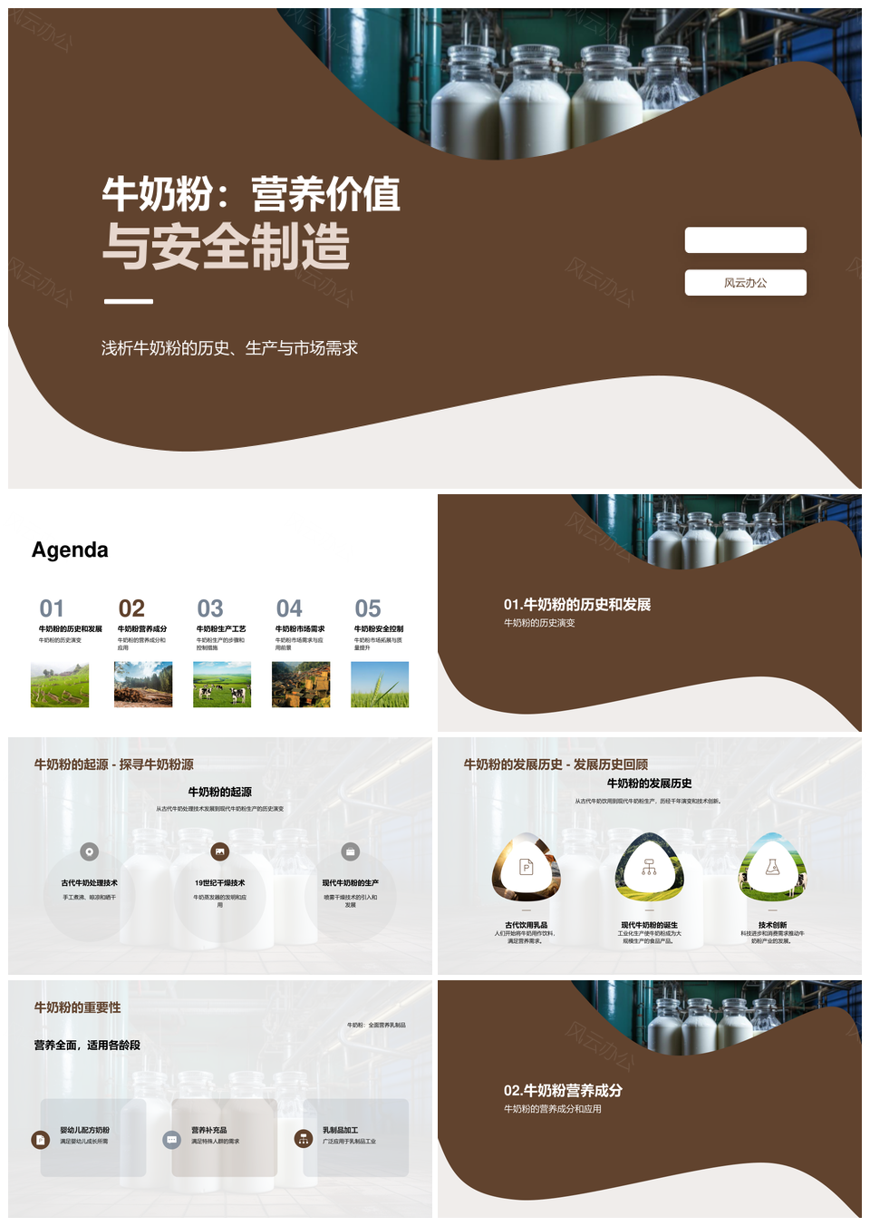 牛奶粉安全生产工艺起源发展及营养重要性PPT模板推荐