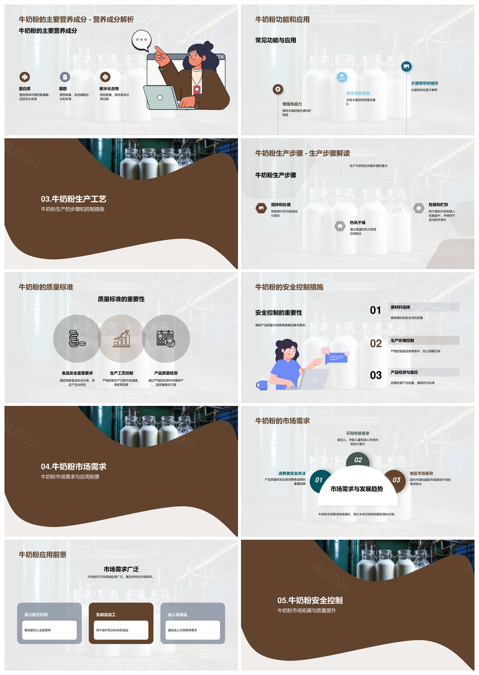 这是一张牛奶粉安全生产工艺起源发展及营养重要性PPT模板,包含牛奶粉、安全生产工艺、起源、发展、营养、重要性等主题内容,也可用作牛奶粉安全生产工艺起源发展、牛奶粉安全生产工艺起源、安全生产工艺起源发展、工艺起源发展营养、起源发展营养重要性、牛奶粉安全生产工艺、安全生产工艺发展、工艺发展营养重要性、牛奶粉安全生产、牛奶粉工艺起源、安全生产起源发展、起源发展营养、发展营养重要性、营养重要性、牛奶粉营养重要性等PPT场景使用。 风云办公提供的牛奶粉安全生产工艺起源发展及营养重要性PPT模板,下载格式为pptx,一共21页,作品中文字及图均可以修改和编辑,图片更改请在作品中右键图片并更换,文字修改请直接点击文字进行修改。