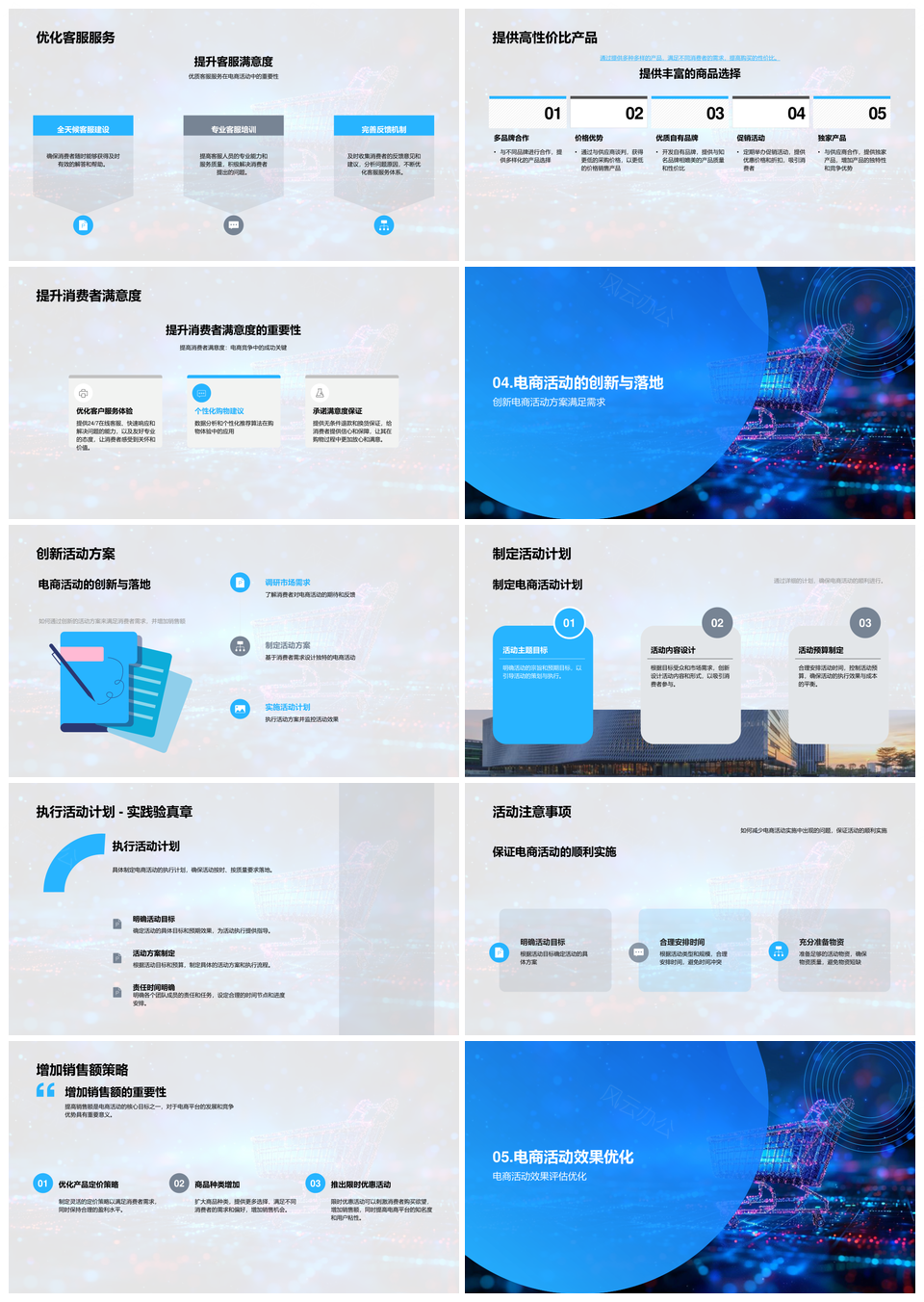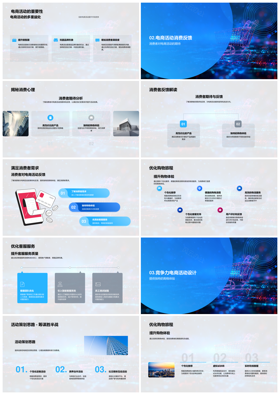 这是一张电商活动策划竞争与满意度优化体验服务产品评估PPT模板,包含电商、活动、策划、竞争、满意度、优化、体验、服务、产品、评估等主题内容,也可用作电商活动策划竞争、满意度优化体验服务、优化体验服务产品、电商活动策划满意度、活动策划竞争优化、满意度优化服务产品、电商服务产品评估、活动优化体验服务、策划竞争满意度优化、电商活动策划优化、满意度体验服务产品、电商优化体验服务、服务产品评估优化、电商活动竞争优化、满意度服务产品优化等PPT场景使用。 风云办公提供的电商活动策划竞争与满意度优化体验服务产品评估PPT模板,下载格式为pptx,一共33页,作品中文字及图均可以修改和编辑,图片更改请在作品中右键图片并更换,文字修改请直接点击文字进行修改。