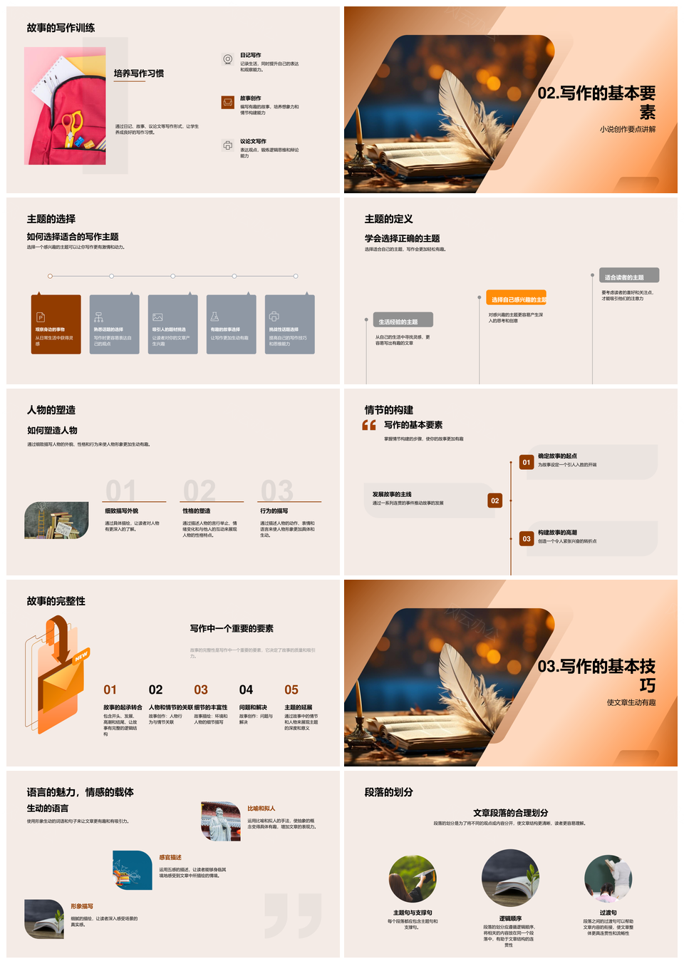 2025实用写作技巧原则框架目的导向说明议论文记叙文PPT模板