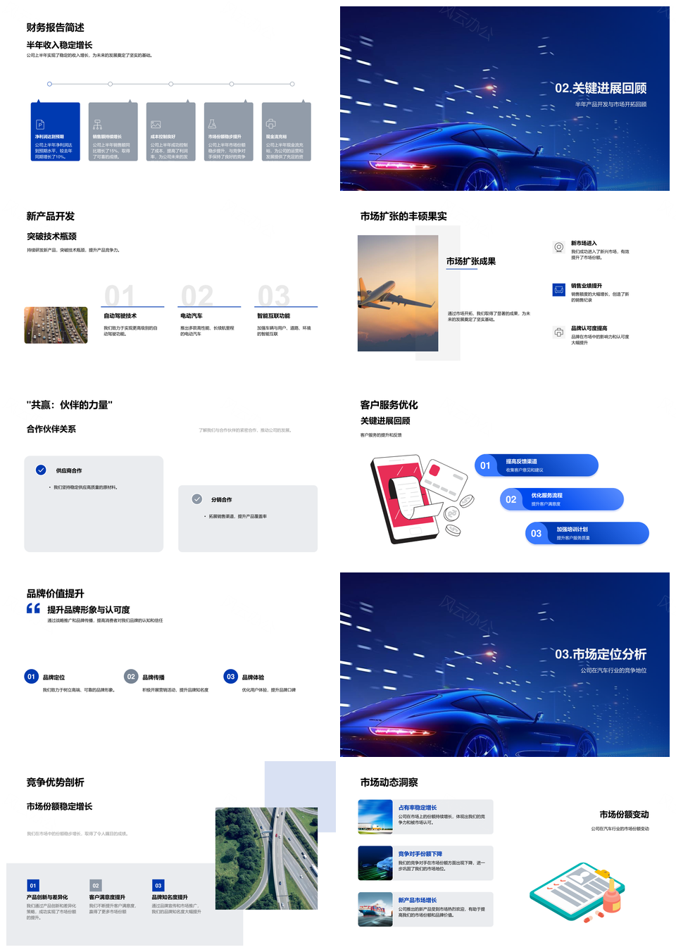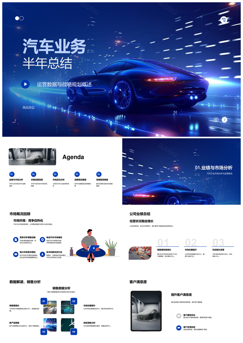 汽车业务半年战略规划运营数据市场总结PPT模板推荐