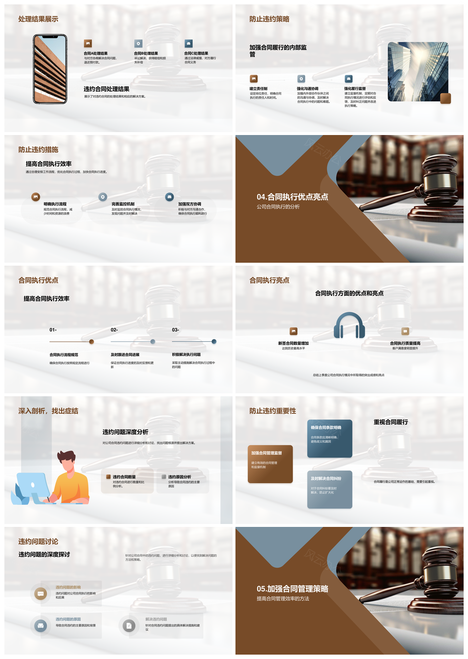 风云办公提供的合同管理执行优化与违约法务策略分析PPT模板,下载格式为pptx,一共33页,作品中文字及图均可以修改和编辑,图片更改请在作品中右键图片并更换,文字修改请直接点击文字进行修改。