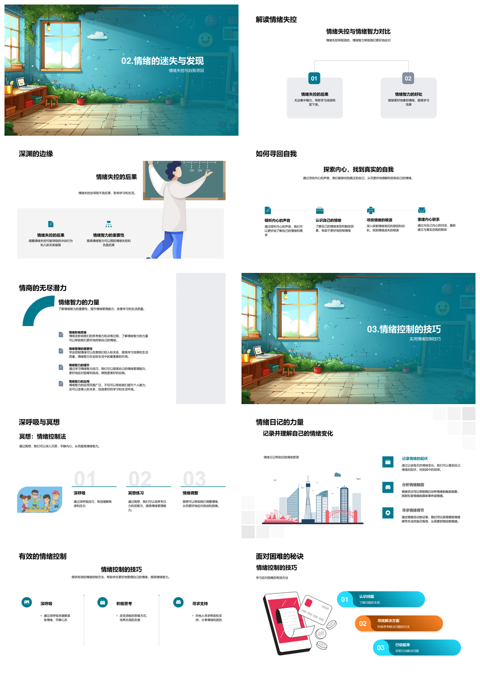 2025小学情绪智力团体辅导调控技巧同理心日记PPT模板推荐