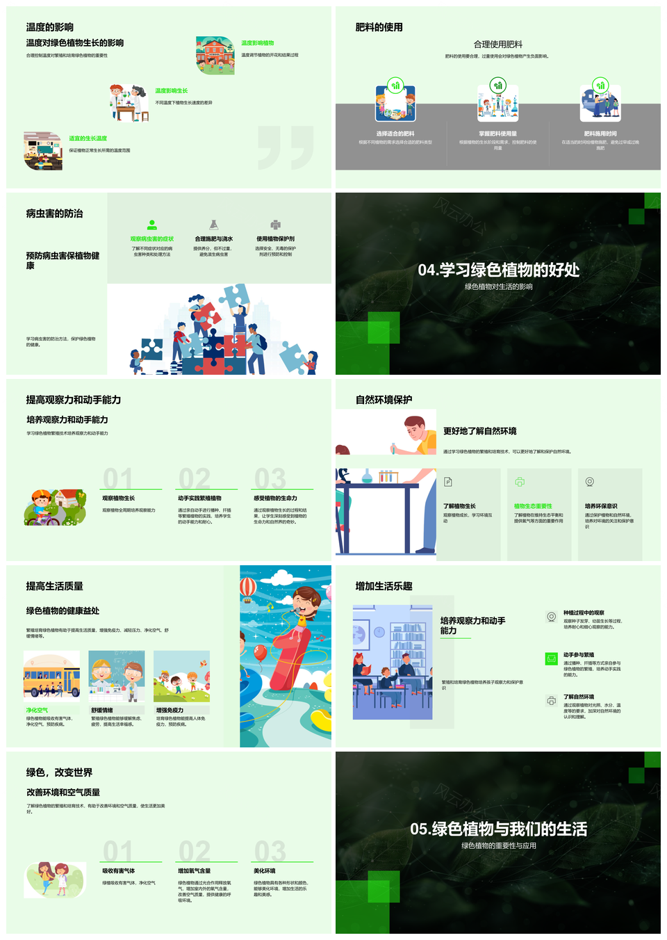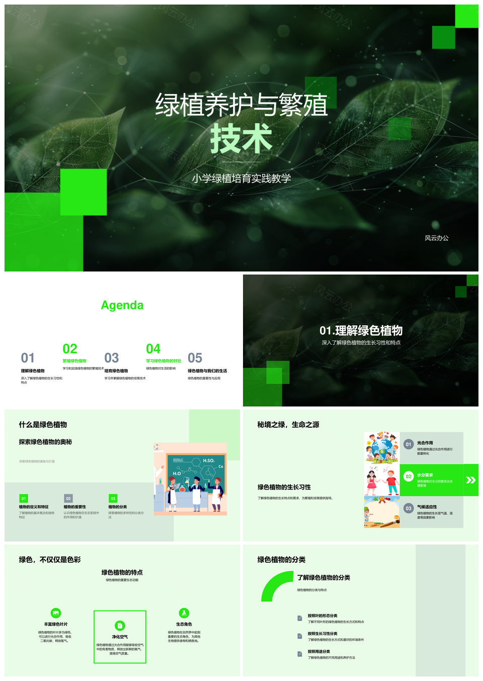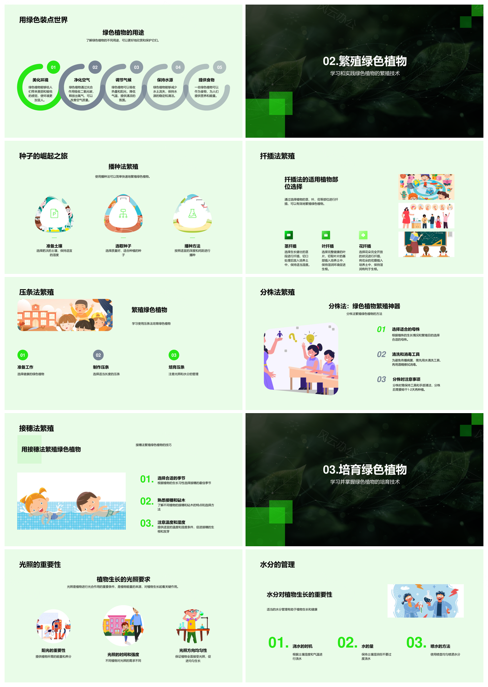 小学生绿植养护繁殖技术与光照教育PPT模板推荐