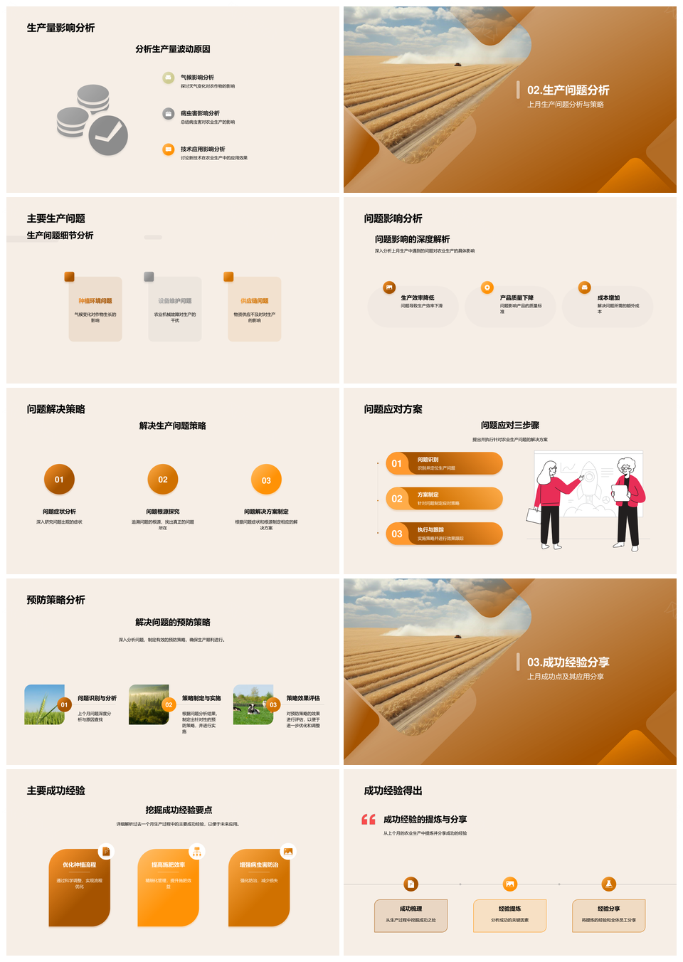 这是一张农业公司麦田生产月度总结析策效量经验PPT模板,包含农业公司、麦田、生产、月度、总结、析策、效量、经验等主题内容,也可用作麦田生产月度总结、农业公司麦田生产、生产月度总结、月度总结析策、总结析策效量、析策效量经验、农业公司麦田、麦田生产、生产月度、月度总结、总结析策、析策效量、效量经验、麦田生产月度、月度总结析策效量等PPT场景使用。 风云办公提供的农业公司麦田生产月度总结析策效量经验PPT模板,下载格式为pptx,一共33页,作品中文字及图均可以修改和编辑,图片更改请在作品中右键图片并更换,文字修改请直接点击文字进行修改。