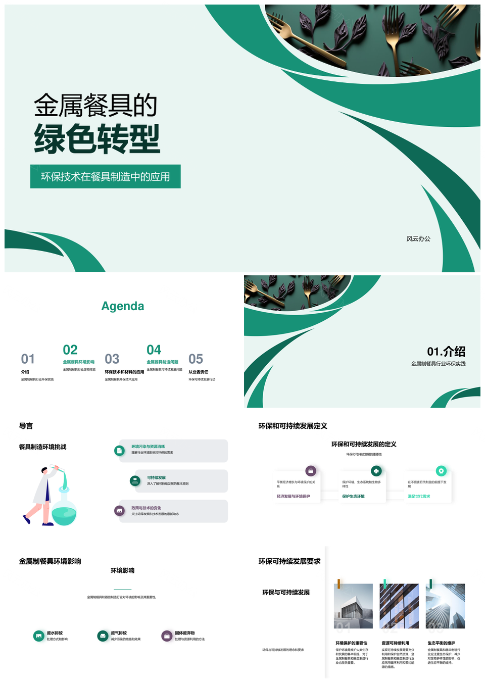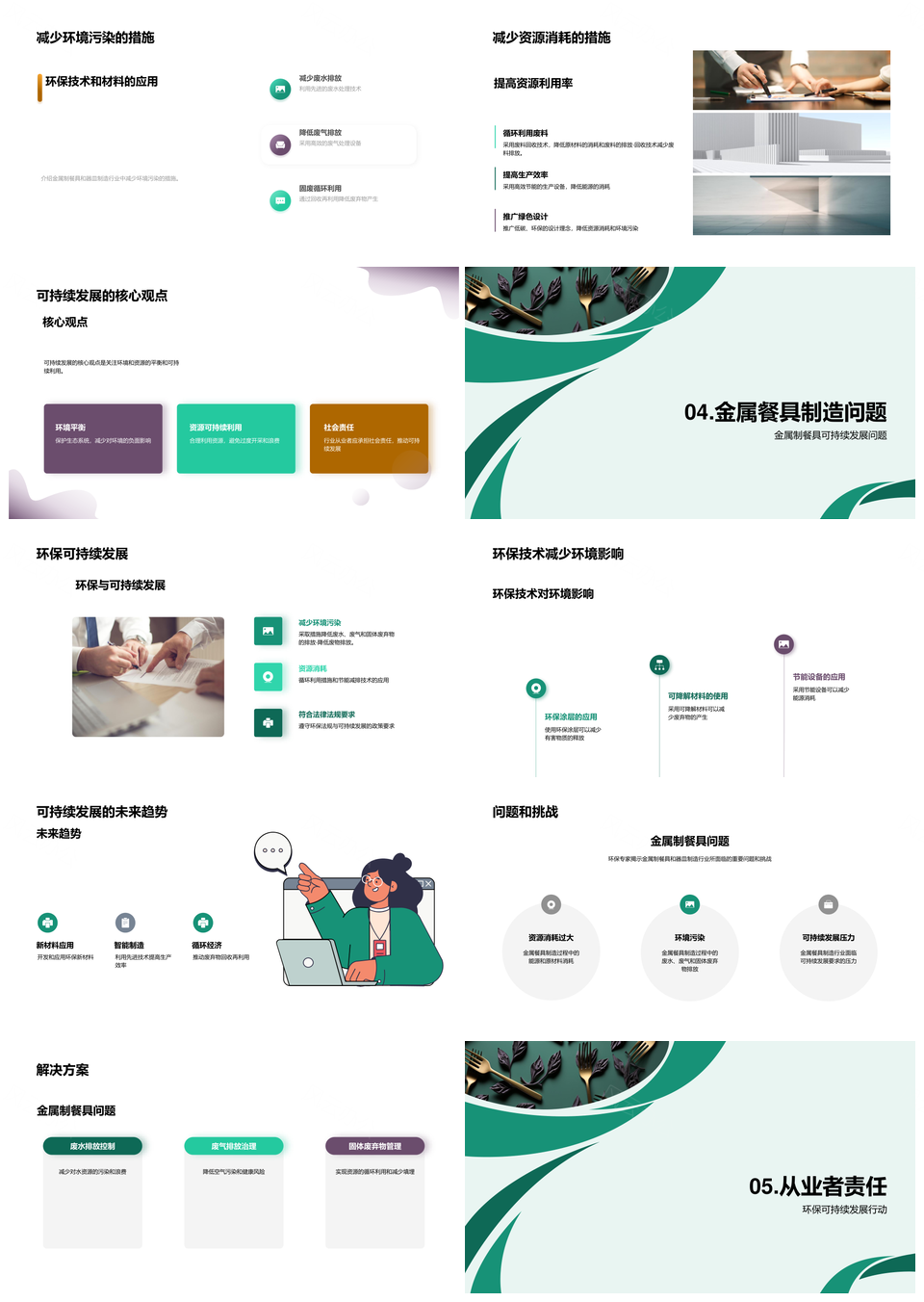 风云办公提供的金属餐具环保减排与可持续发展实践PPT模板,下载格式为pptx,一共33页,作品中文字及图均可以修改和编辑,图片更改请在作品中右键图片并更换,文字修改请直接点击文字进行修改。