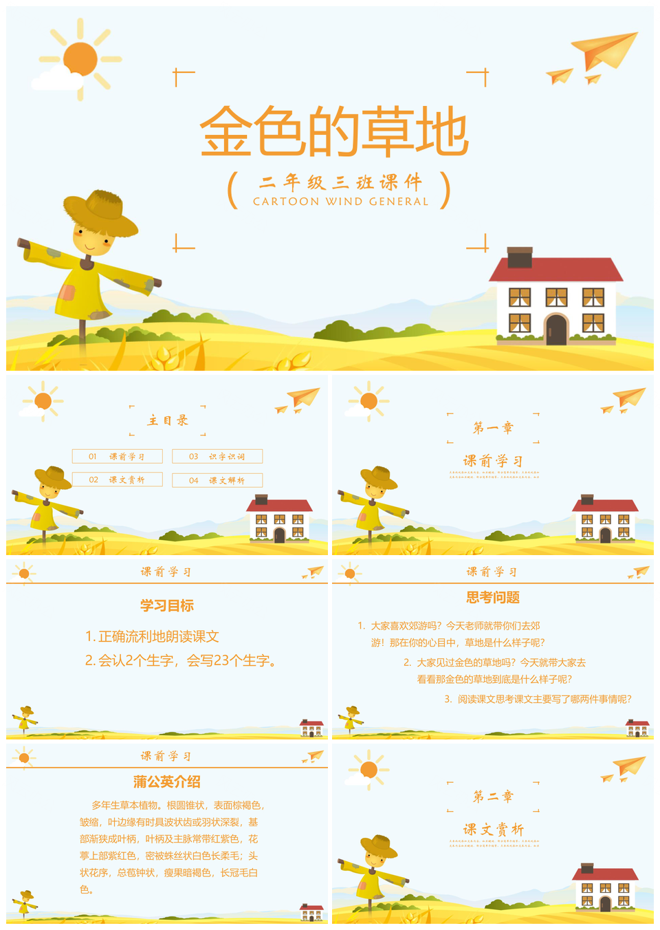这是一张人教版二年级课件金色的草地PPT模板,包含人教版、二年级、课件、金色、草地等主题内容,也可用作人教版、二年级、课件、金色、草地