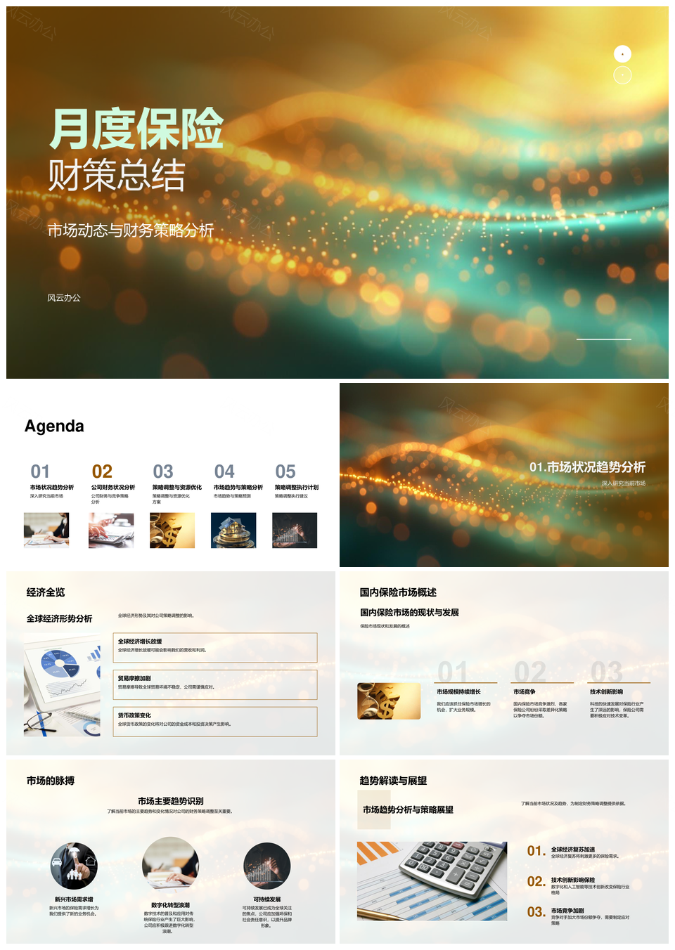 月度保险财策市场动态财务策略全球经济分析PPT模板推荐