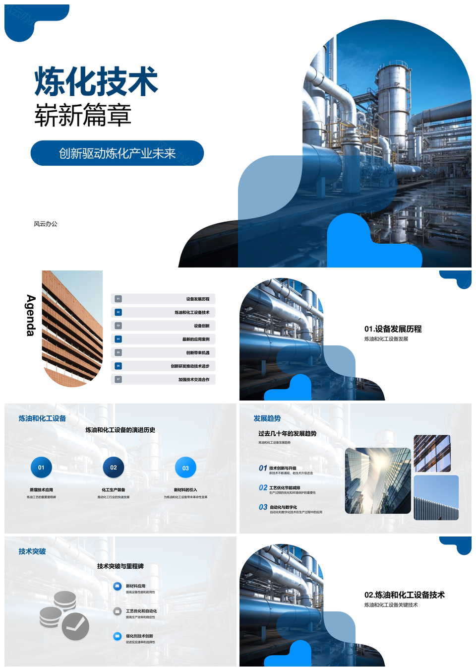 风云办公提供的创新应用引领炼化设备未来进步PPT模板,下载格式为pptx,一共29页,作品中文字及图均可以修改和编辑,图片更改请在作品中右键图片并更换,文字修改请直接点击文字进行修改。