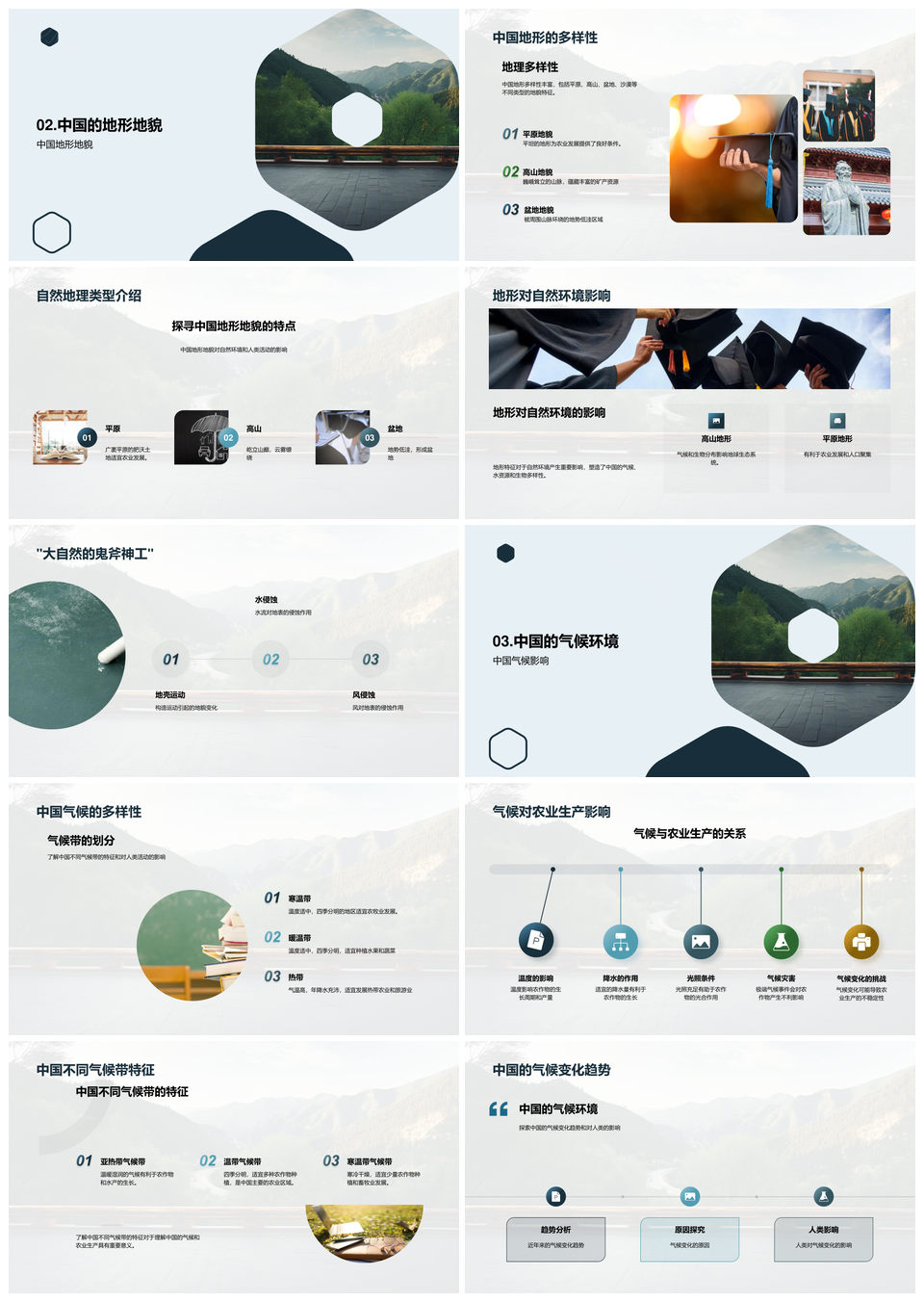 中国自然区域地理气候农业人口分布PPT模板