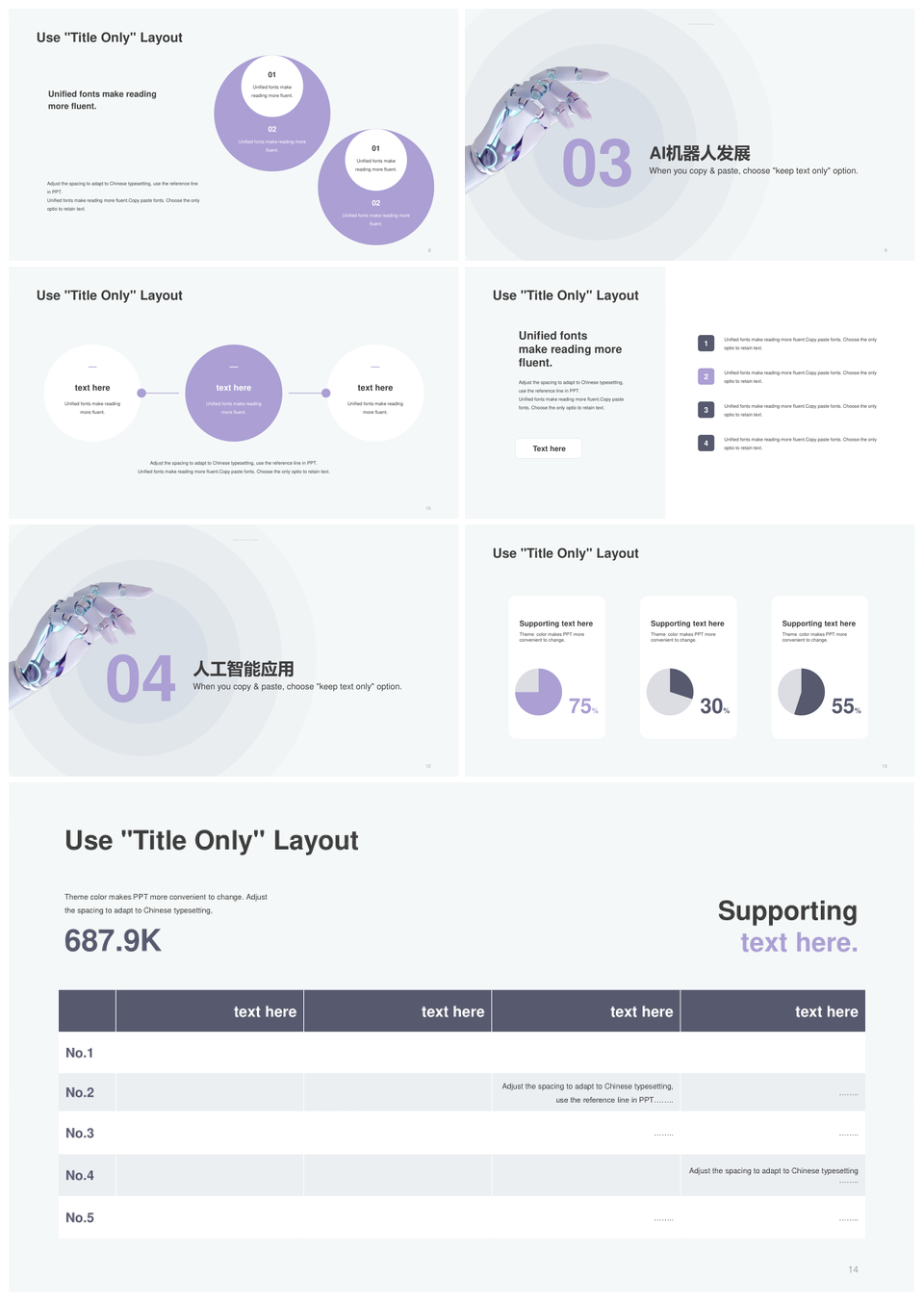 这是一张灰色机器人手势3D技术人工智能研究报告PPT模板,包含灰色、机器人、手势、3D技术、人工智能、研究报告等主题内容,也可用作灰色机器人手势3D技术、灰色机器人手势人工智能、机器人手势3D技术人工智能、灰色手势3D技术人工智能、灰色手势人工智能研究报告、机器人手势人工智能研究报告、3D技术人工智能研究报告、灰色机器人人工智能研究报告、灰色手势3D技术报告、手势3D技术人工智能、机器人3D技术人工智能、人工智能研究报告、灰色机器人3D技术、机器人手势3D技术、灰色人工智能研究报告等PPT场景使用。 风云办公提供的灰色机器人手势3D技术人工智能研究报告PPT模板,下载格式为pptx,一共15页,作品中文字及图均可以修改和编辑,图片更改请在作品中右键图片并更换,文字修改请直接点击文字进行修改。