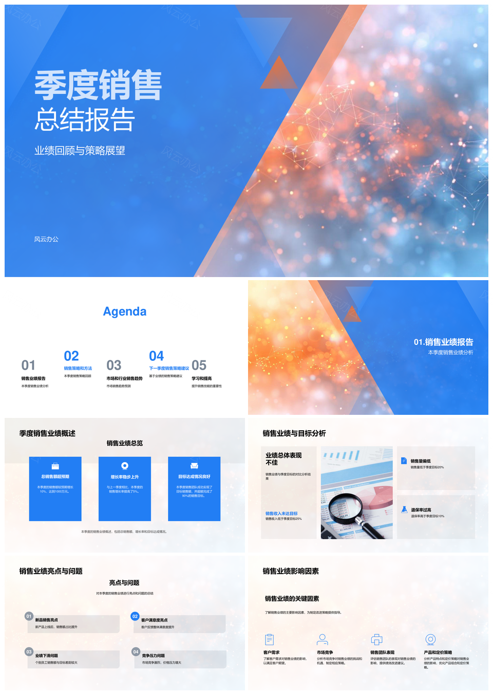 风云办公提供的季度销售策略调整目标业绩趋势总结PPT模板,下载格式为pptx,一共33页,作品中文字及图均可以修改和编辑,图片更改请在作品中右键图片并更换,文字修改请直接点击文字进行修改。
