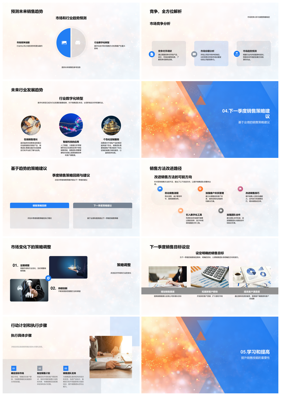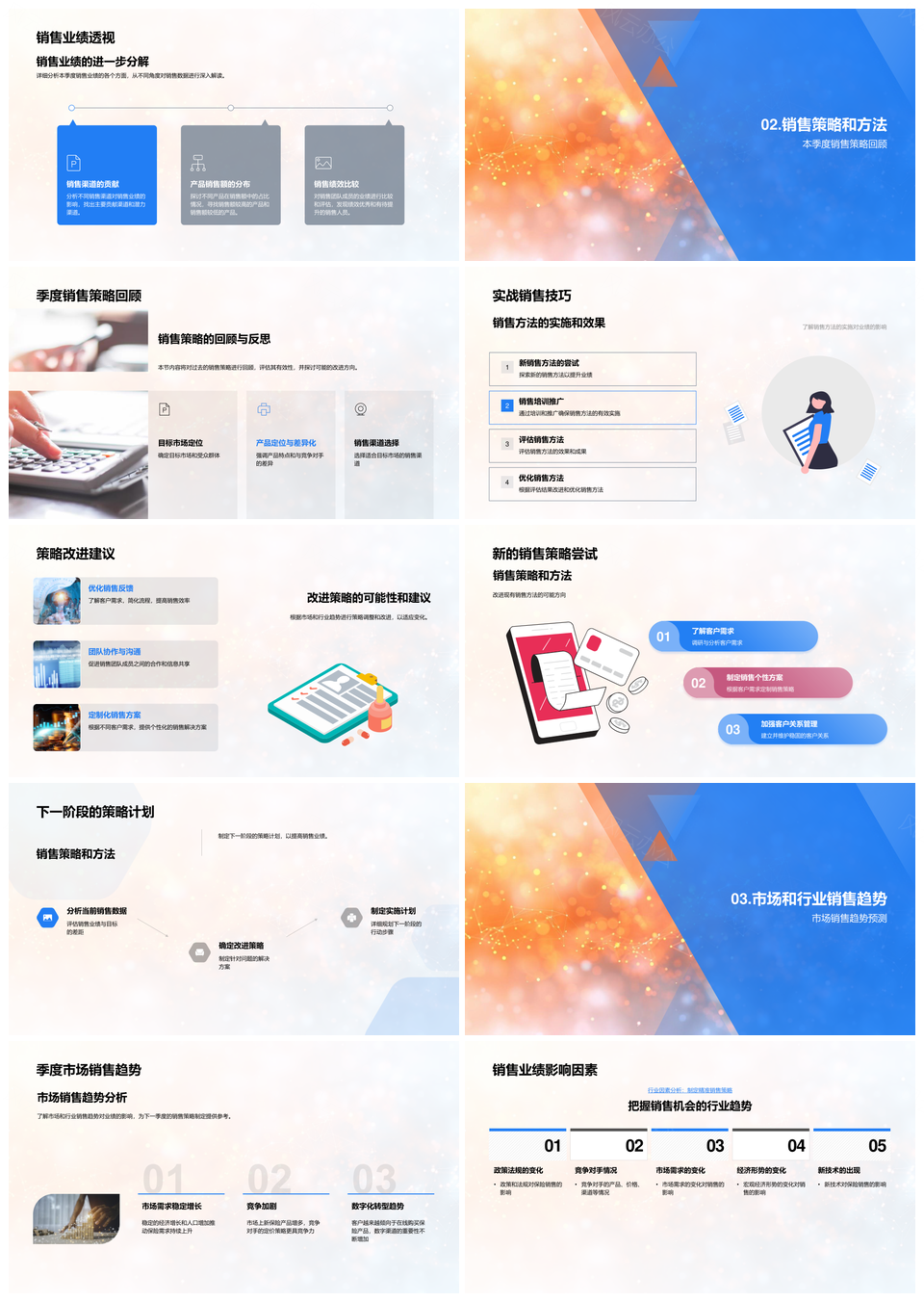 这是一张季度销售策略调整目标业绩趋势总结PPT模板,包含季度、销售策略、调整、目标、业绩、趋势、总结等主题内容,也可用作季度销售策略调整、销售策略调整目标、策略调整目标业绩、调整目标业绩趋势、目标业绩趋势总结、季度销售策略、销售策略调整、策略调整目标、调整目标业绩、目标业绩趋势、业绩趋势总结、季度销售、销售策略、策略调整、调整目标等PPT场景使用。