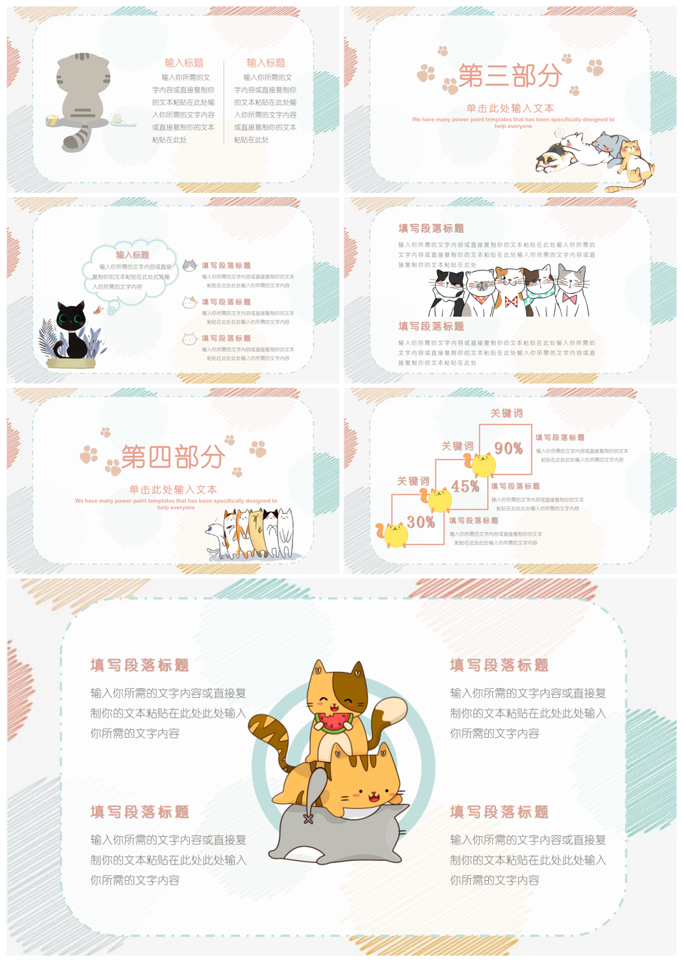 猫咪彩色可爱卡通PPT