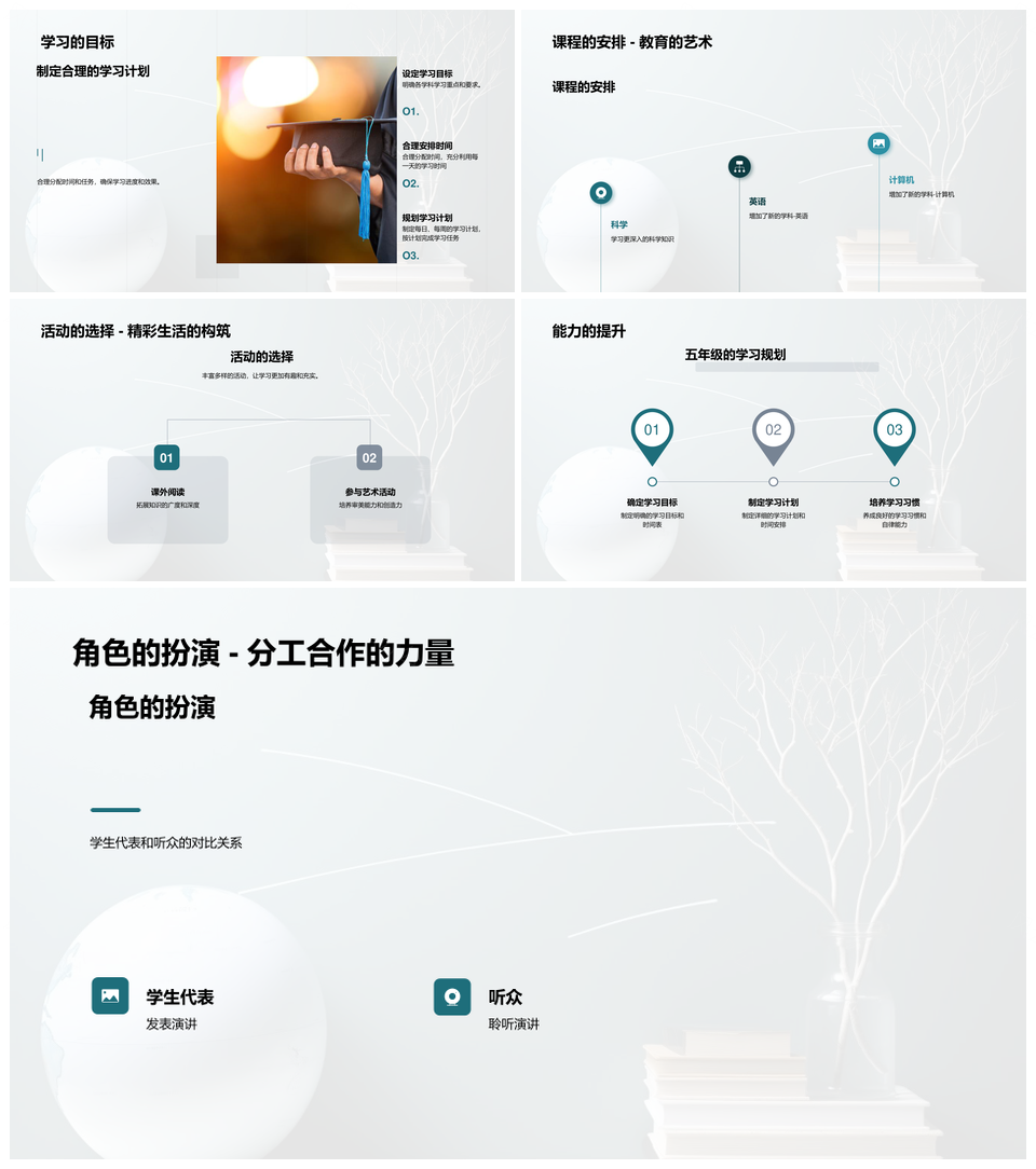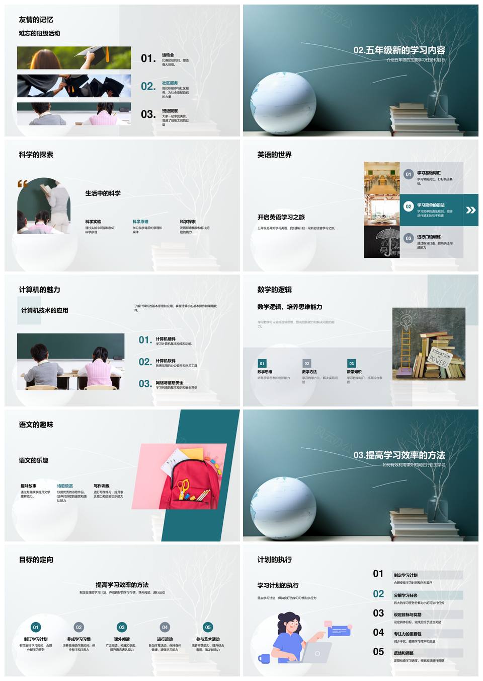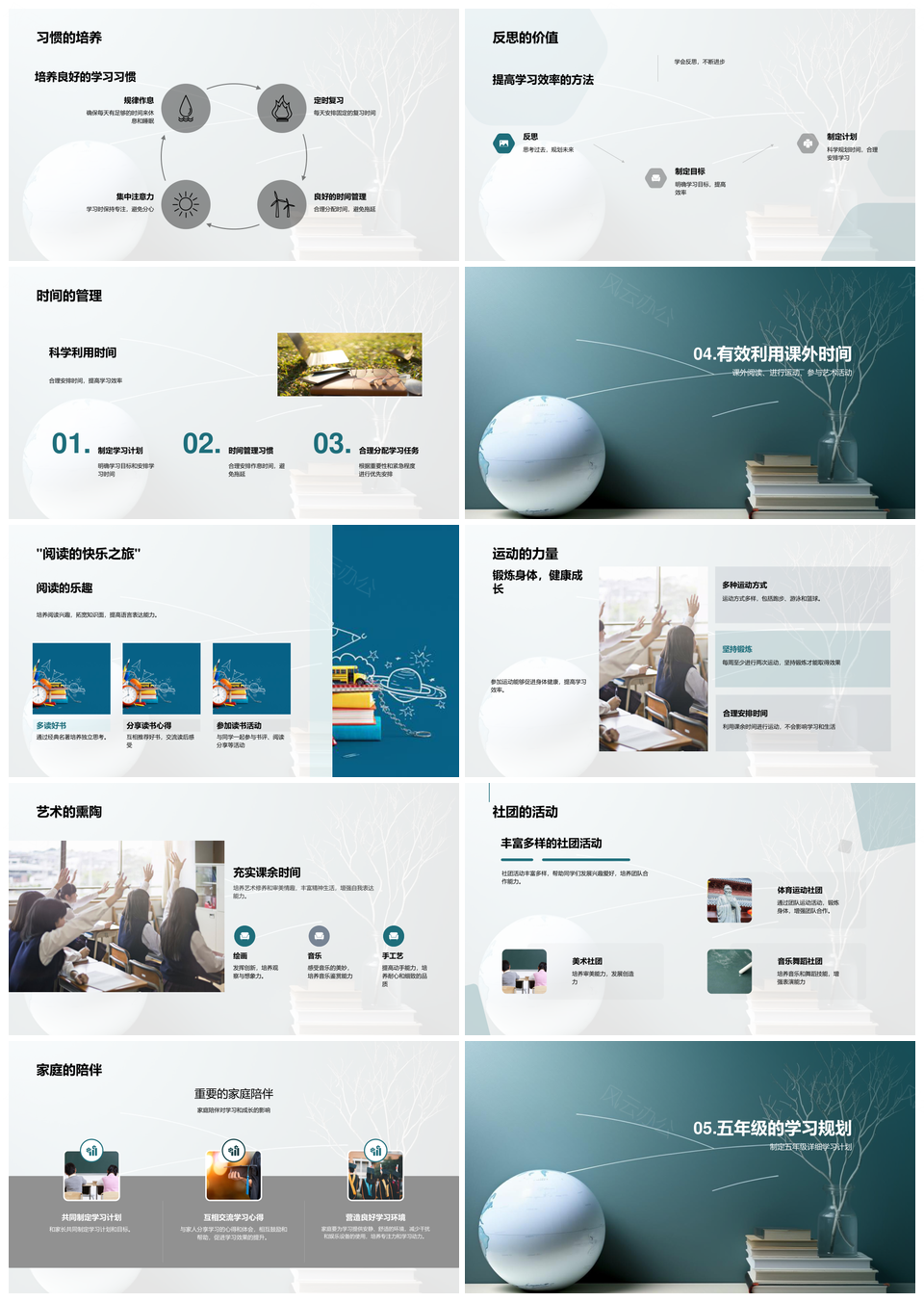 这是一张五年级自主学习时钟管理科学英语计算机高效规划PPT模板,包含自主学习、时钟管理、科学、英语、计算机、高效规划等主题内容,也可用作五年级自主学习时钟管理科学、自主学习时钟管理科学英语、时钟管理科学英语计算机、科学英语计算机高效规划、五年级自主学习科学英语、自主学习科学英语计算机、科学英语计算机高效规划、五年级自主学习时钟管理、自主学习时钟管理英语、时钟管理科学英语、科学英语计算机、英语计算机高效规划、五年级计算机高效规划、自主学习高效规划、五年级科学英语等PPT场景使用。 风云办公提供的五年级自主学习时钟管理科学英语计算机高效规划PPT模板,下载格式为pptx,一共33页,作品中文字及图均可以修改和编辑,图片更改请在作品中右键图片并更换,文字修改请直接点击文字进行修改。