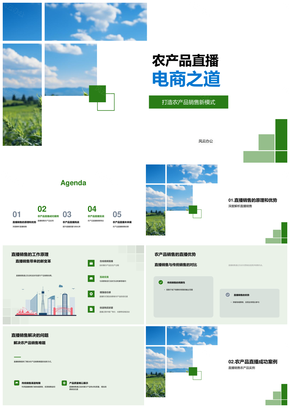 风云办公提供的农产品直播电商营销策划与设备技术PPT模板,下载格式为pptx,一共23页,作品中文字及图均可以修改和编辑,图片更改请在作品中右键图片并更换,文字修改请直接点击文字进行修改。