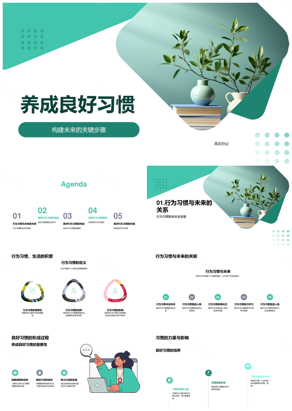 风云办公提供的良好习惯奠基未来社交学习发展PPT模板,下载格式为pptx,一共33页,作品中文字及图均可以修改和编辑,图片更改请在作品中右键图片并更换,文字修改请直接点击文字进行修改。