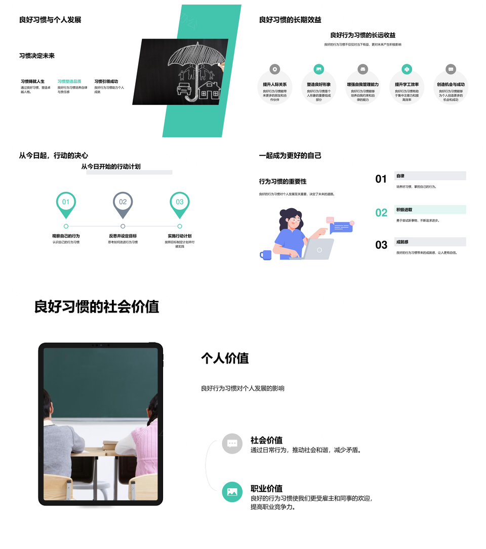 这是一张良好习惯奠基未来社交学习发展PPT模板,包含良好习惯、奠基、未来、社交、学习、发展等主题内容,也可用作良好习惯奠基未来、习惯奠基未来社交、奠基未来社交学习、未来社交学习发展、良好习惯奠基、习惯奠基未来、奠基未来社交、未来社交学习、社交学习发展、良好习惯、习惯奠基、奠基未来、未来社交、社交学习、学习发展等PPT场景使用。