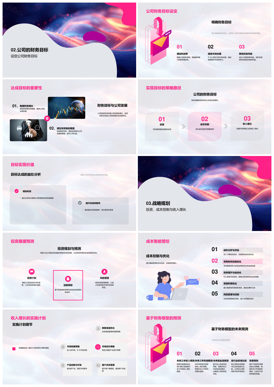 财务战略报告市场行业趋势目标投资成本收入增长PPT模板推荐
