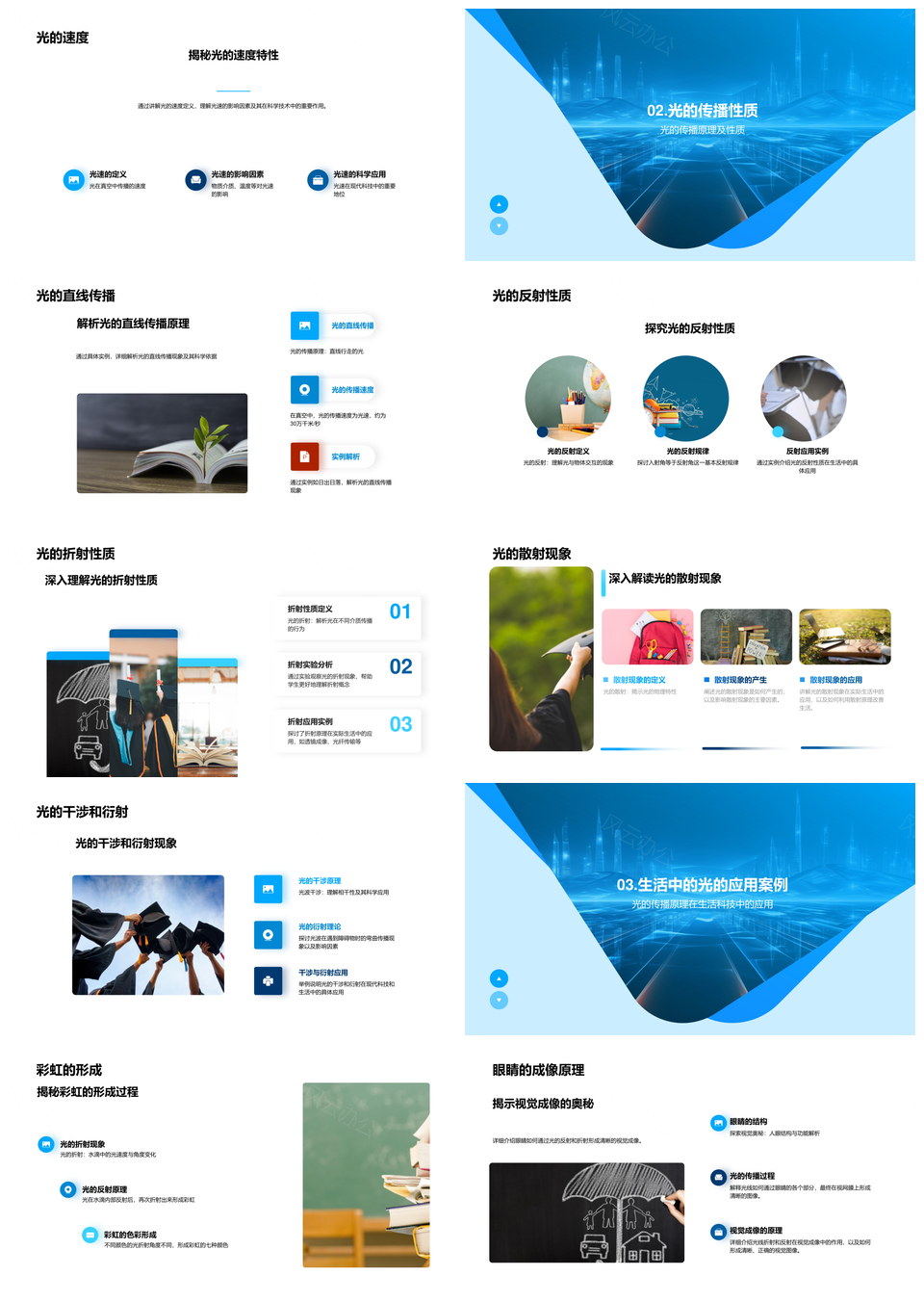 这是一张光传播特性现象与应用解析PPT模板,包含光传播、特性、现象、应用、解析等主题内容,也可用作光传播特性现象应用、特性现象应用解析、光传播特性现象、光传播特性应用、光传播应用解析、特性现象应用、现象应用解析、特性应用解析、光传播现象应用、光传播特性解析、光传播特性、光传播应用、应用解析、特性应用、特性现象等PPT场景使用。