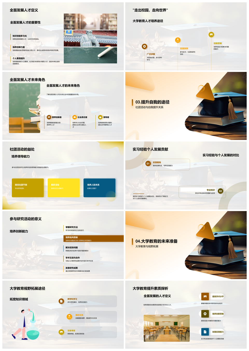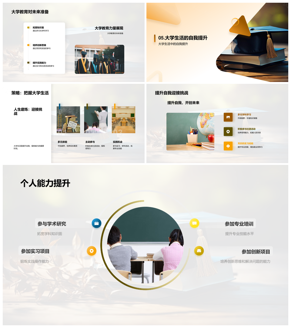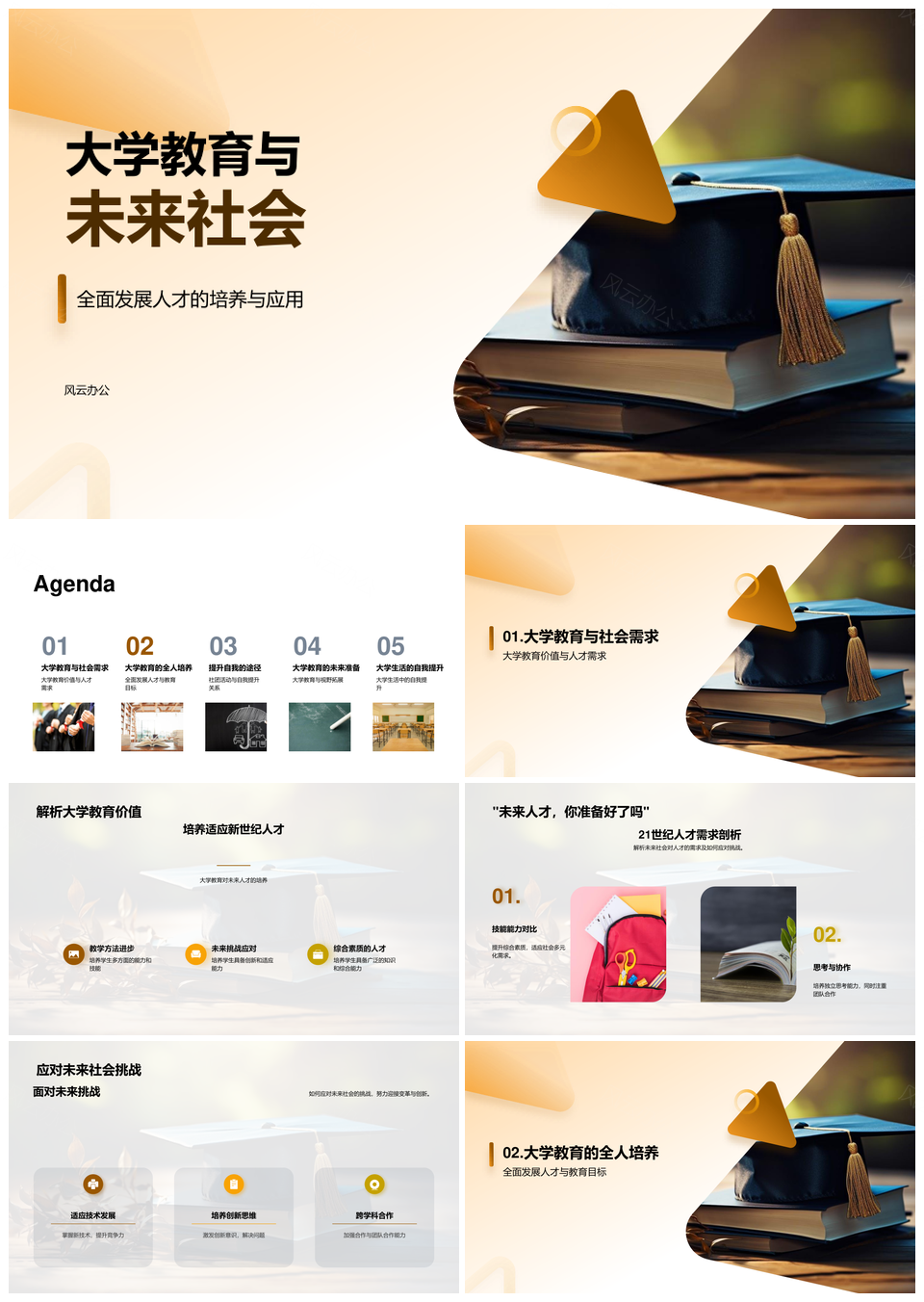 风云办公提供的大学教育育全才应对未来社会挑战PPT模板,下载格式为pptx,一共23页,作品中文字及图均可以修改和编辑,图片更改请在作品中右键图片并更换,文字修改请直接点击文字进行修改。