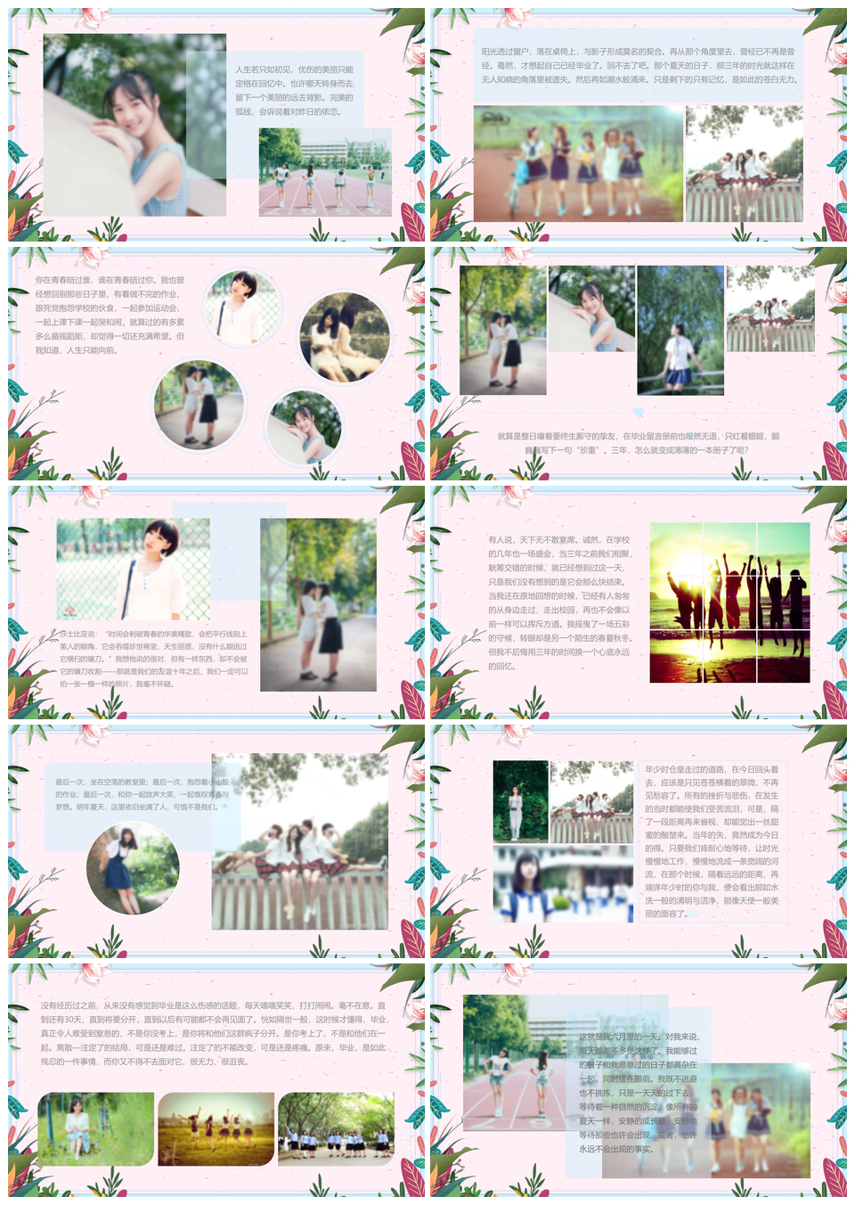 青春纪念册毕业季班会毕业答辩蓝色小清新PPT模板