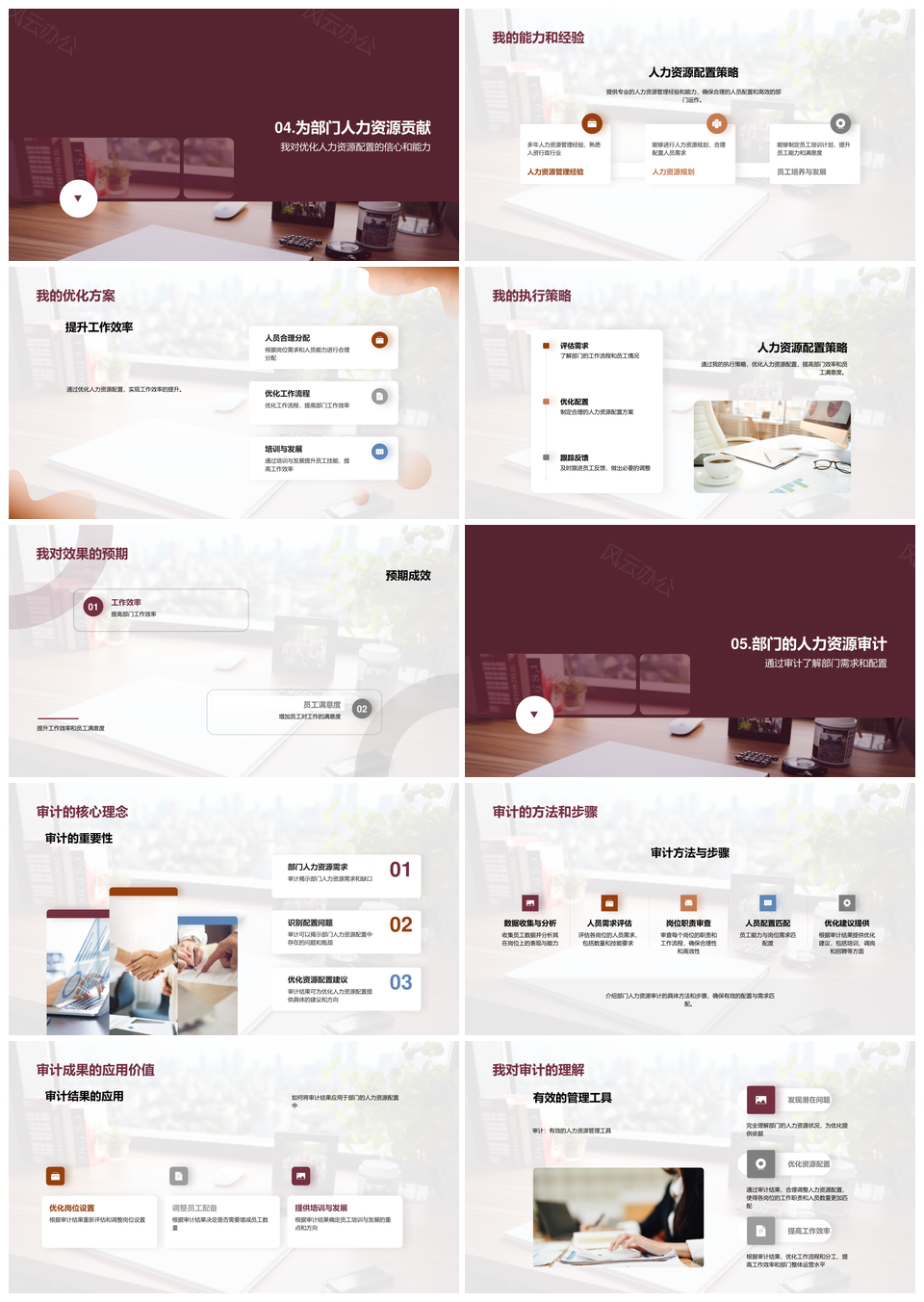 这是一张人力资源优化策略部门效度竞聘述职配置审计PPT模板,包含人力资源、优化、策略、部门、效度、竞聘、述职、配置、审计等主题内容,也可用作人力资源优化策略部门、优化策略部门效度、策略部门效度竞聘、部门效度竞聘述职、效度竞聘述职配置、竞聘述职配置审计、人力资源优化策略、优化策略部门、策略部门效度、部门效度竞聘、效度竞聘述职、竞聘述职配置、述职配置审计、人力资源优化、优化策略、策略部门、部门效度、效度竞聘、竞聘述职、述职配置、配置审计等PPT场景使用。 风云办公提供的人力资源优化策略部门效度竞聘述职配置审计PPT模板,下载格式为pptx,一共28页,作品中文字及图均可以修改和编辑,图片更改请在作品中右键图片并更换,文字修改请直接点击文字进行修改。