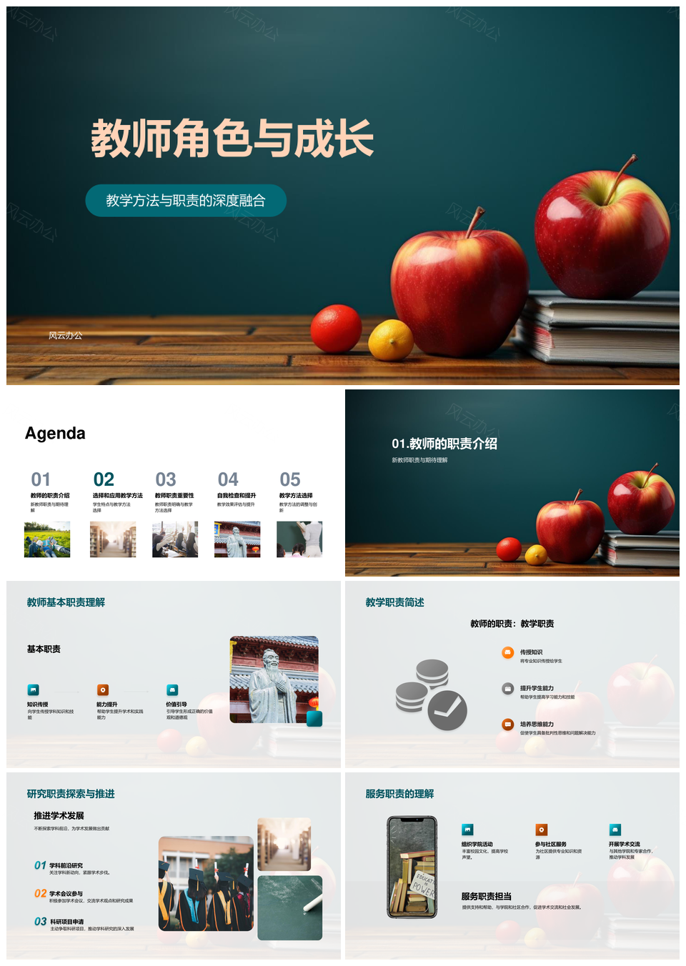 风云办公提供的教师角色成长与教学研究服务方法职责PPT模板,下载格式为pptx,一共26页,作品中文字及图均可以修改和编辑,图片更改请在作品中右键图片并更换,文字修改请直接点击文字进行修改。