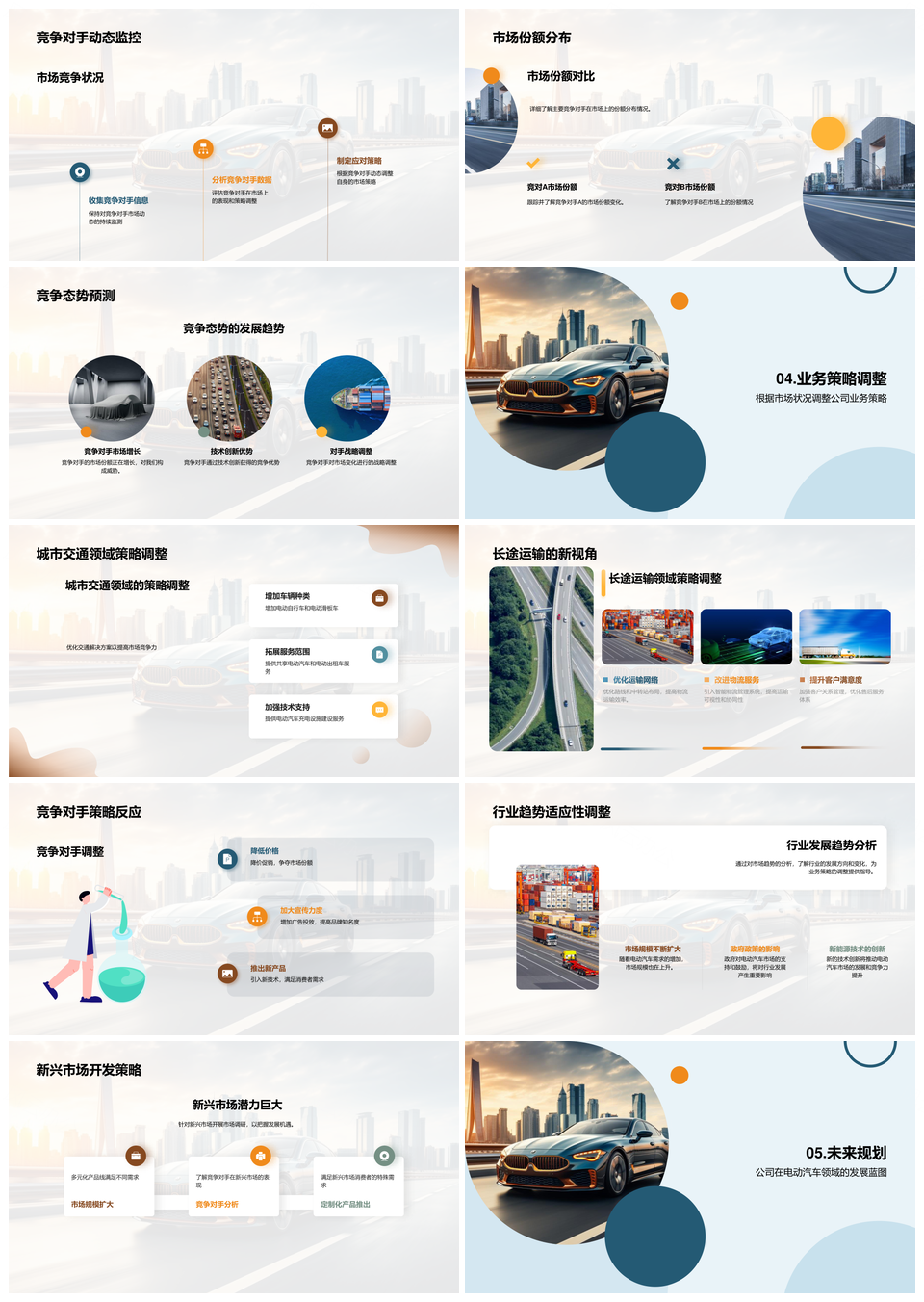 电动汽车市场城市交通长途运输竞争策略分析PPT模板推荐