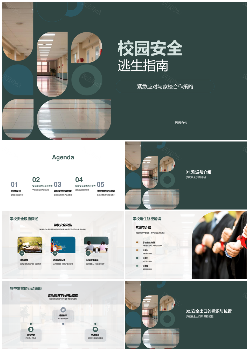 风云办公提供的校园安全逃生演练家校合作指南PPT模板,下载格式为pptx,一共23页,作品中文字及图均可以修改和编辑,图片更改请在作品中右键图片并更换,文字修改请直接点击文字进行修改。
