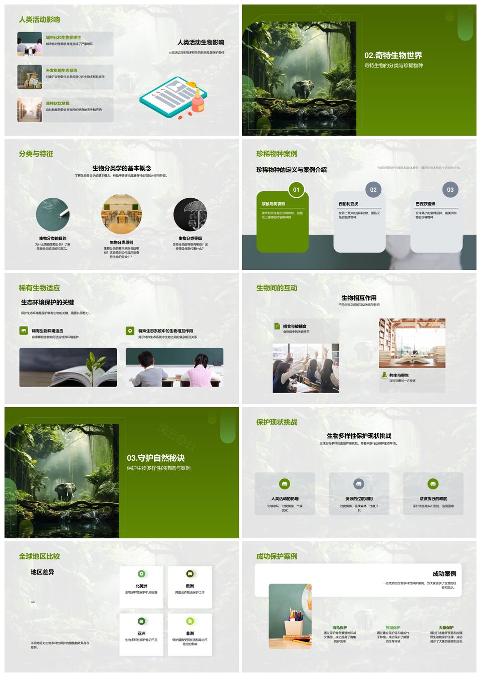 风云办公提供的守护生物多样性探秘多元生态行动PPT模板,下载格式为pptx,一共29页,作品中文字及图均可以修改和编辑,图片更改请在作品中右键图片并更换,文字修改请直接点击文字进行修改。