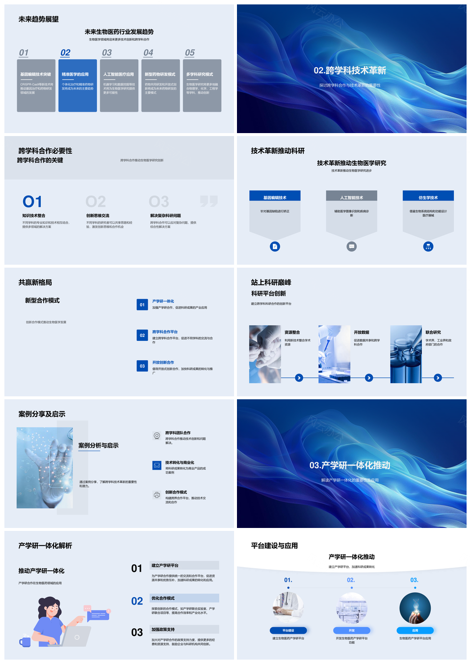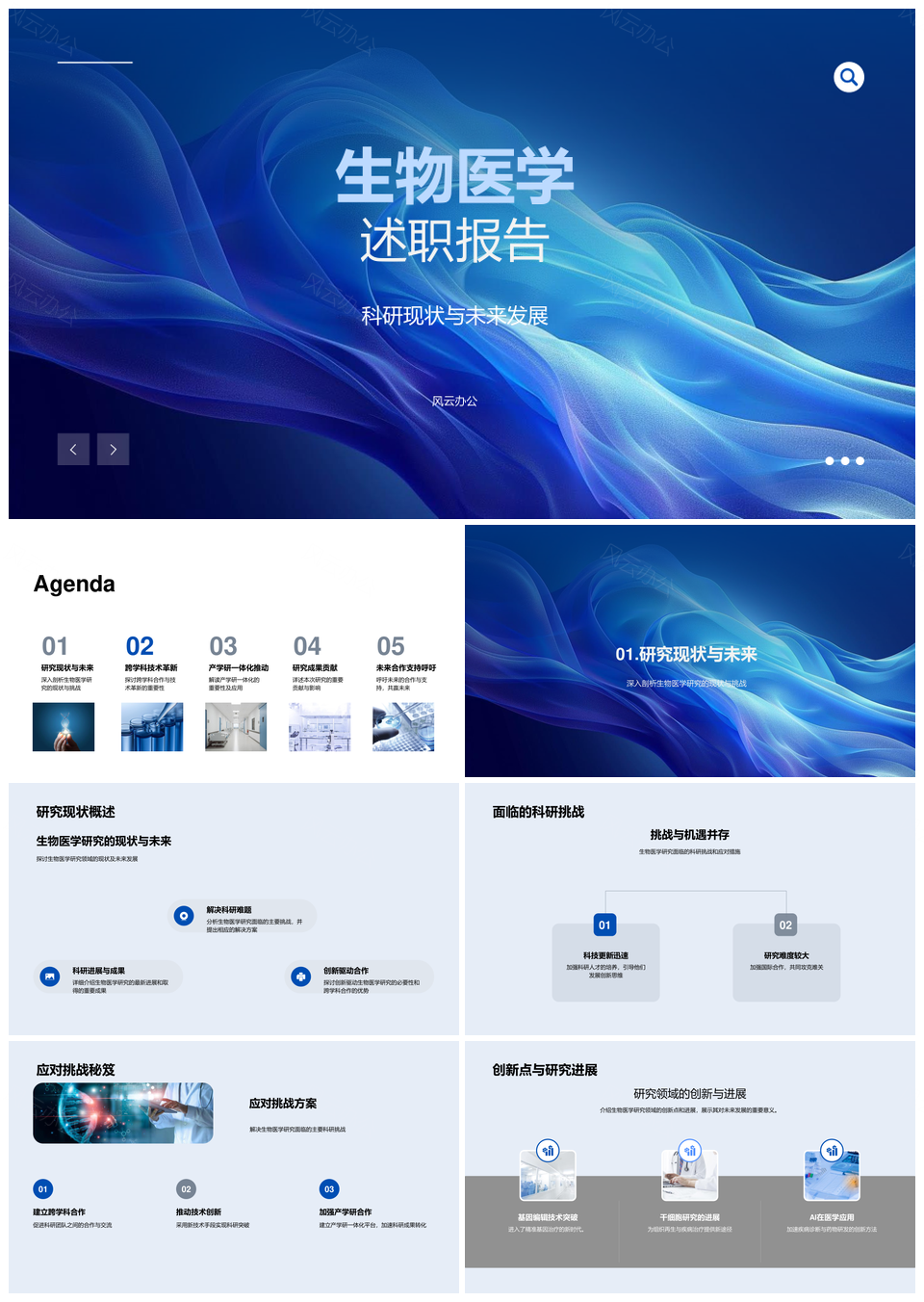 风云办公提供的生物医学科研挑战创新跨学科发展PPT模板,下载格式为pptx,一共33页,作品中文字及图均可以修改和编辑,图片更改请在作品中右键图片并更换,文字修改请直接点击文字进行修改。